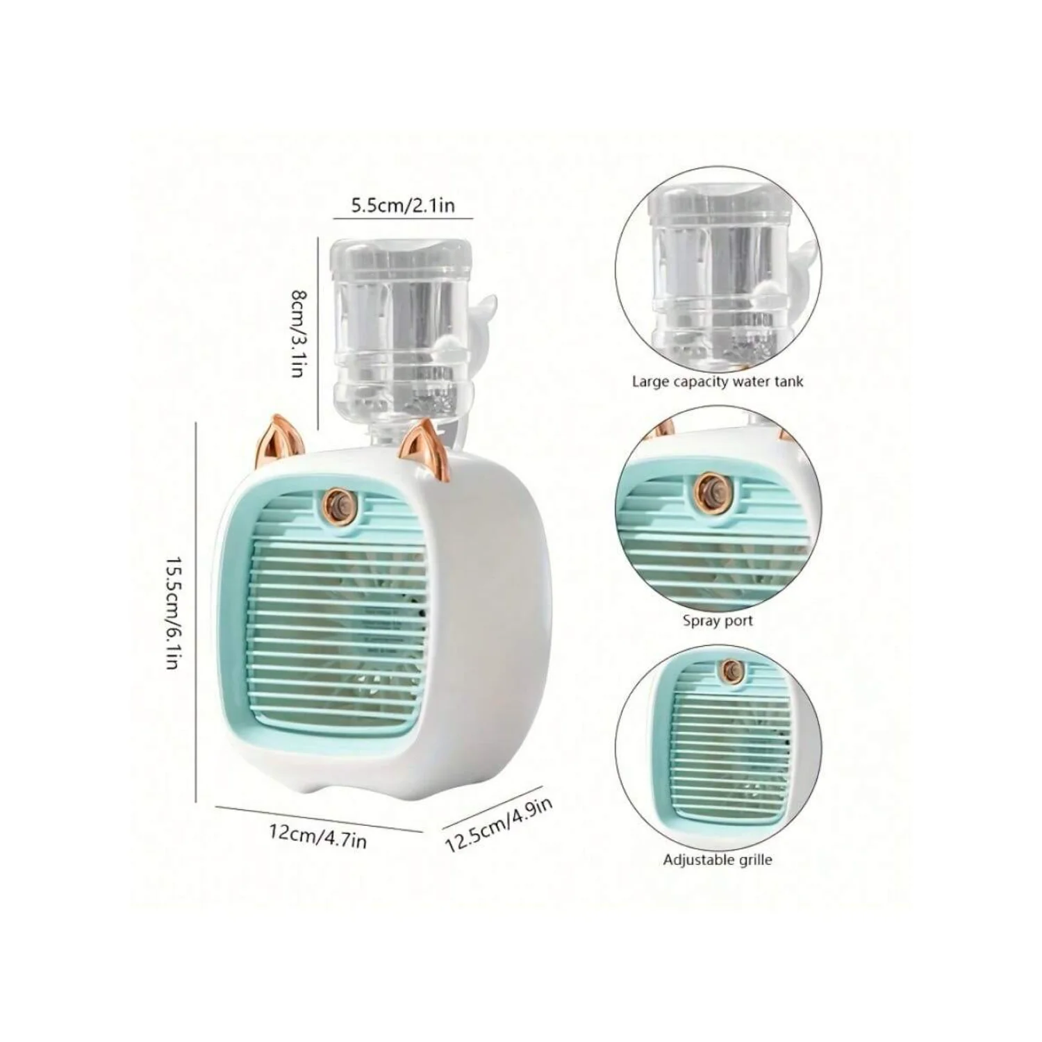 4.قل وداعًا لارتفاع درجة الحرارة باستخدام مروحة التكييف المبردة بالماء.قابلة لإعادة الشحن عبر USB من النوع C، هذه المروحة ليست مريحة فحسب، بل صديقة للبيئة أيضًا.مثالي للاستخدام المكتبي أو كهدية لصديق أو أحد أفراد العائلة.