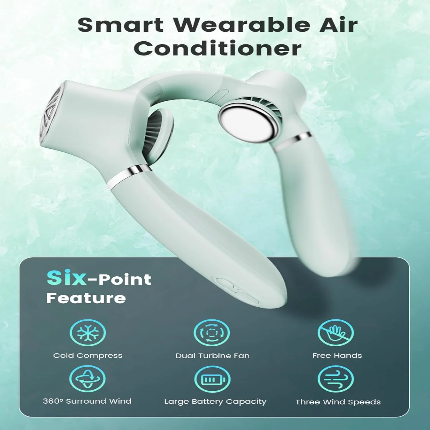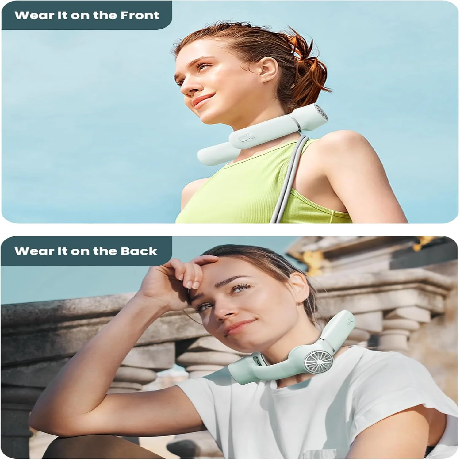 1.ابقِ باردًا أثناء التنقل مع مروحة مكيف الهواء ذات الرقبة، المميزة° حول تقنية التبريد وبطارية قابلة لإعادة الشحن بقدرة 4000 مللي أمبير في الساعة لتحديث طويل الأمد.