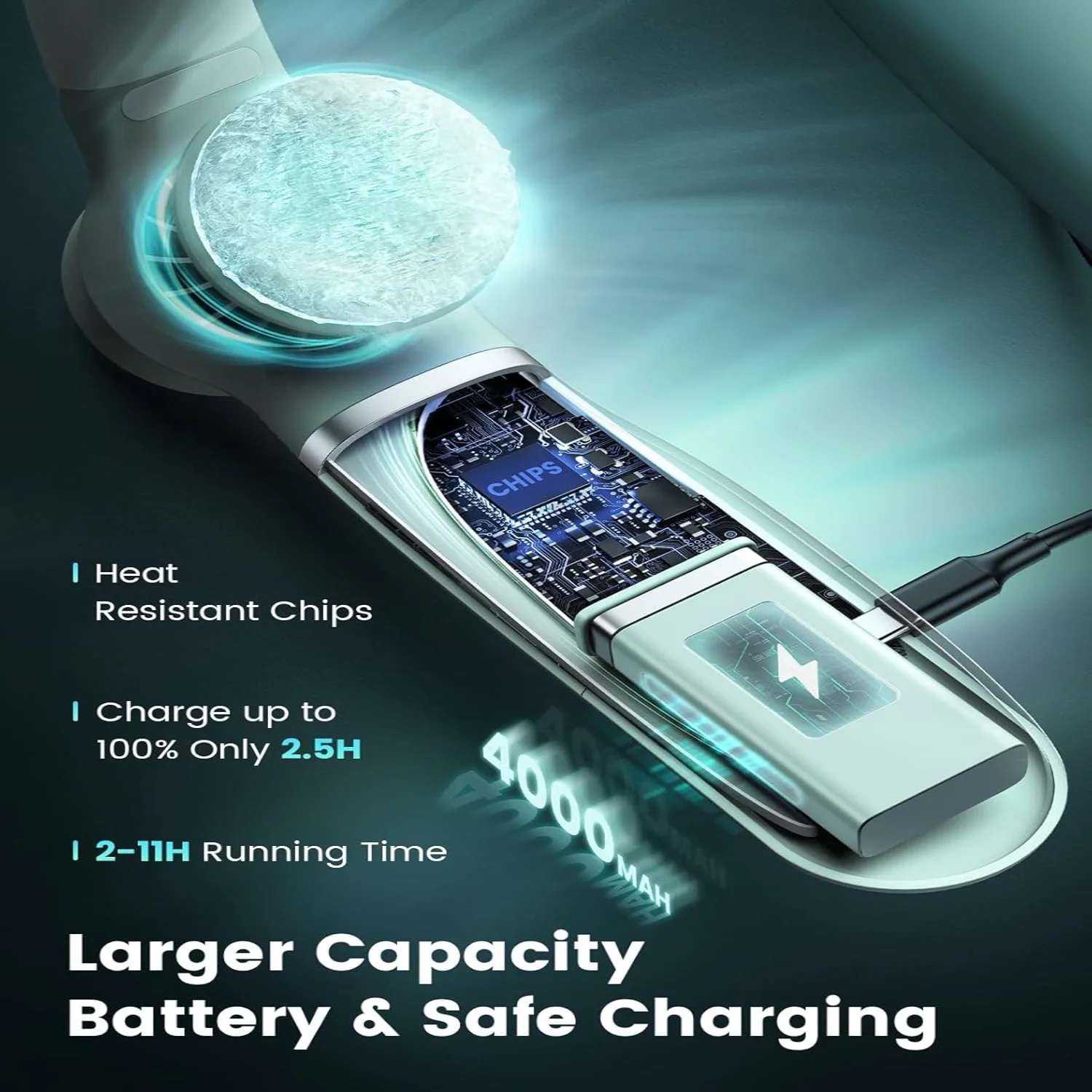 5. لا تدع حرارة الصيف تبطئك - ابق منتعشًا ومرتاحًا مع مروحتنا الشخصية القابلة لإعادة الشحن بقدرة 4000 مللي أمبير في الساعة، وهي الحل الأمثل للأنشطة الخارجية والفلاش الساخن.