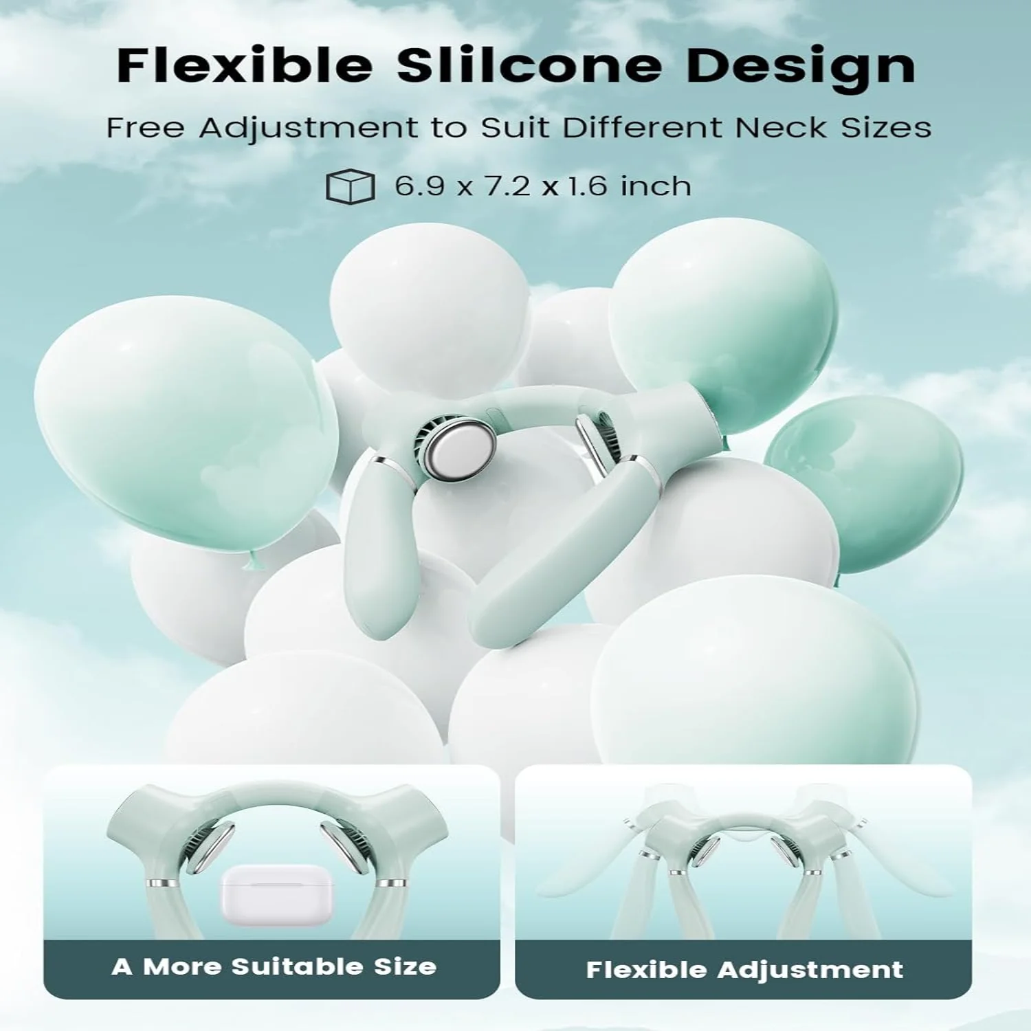 2.تغلب على الحرارة مع مروحة الرقبة المحمولة الخاصة بنا مع شريحة التبريد، المصممة بأسلوب أنيق وعصري و0-180° سيليكون قابل للتعديل لملاءمة قابلة للتعديل.