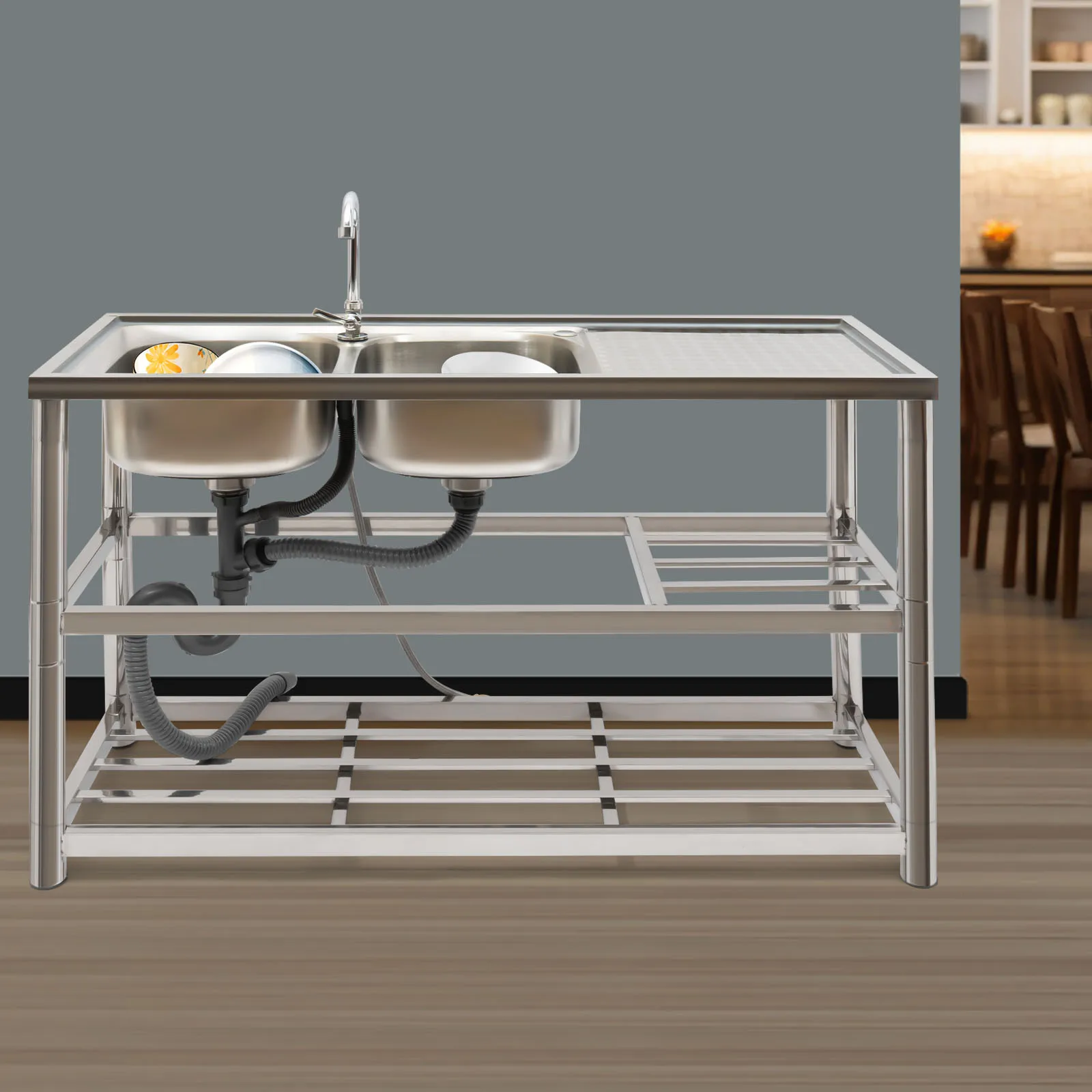 بفضل تصميم الحوض المزدوج والمواد عالية الجودة، فإن هذا الحوض الفولاذي المقاوم للصدأ القائم بذاته هو مساعد تنظيف جيد.لا يخفف حوضه الموسع والمعمق من رذاذ الماء فحسب، بل يزيد أيضًا من استخدام المساحة للتعامل مع كميات كبيرة من أواني الطهي.وفي الوقت نفسه، يسمح سطح العمل القريب بوضع الأشياء أو القيام بأعمال أخرى.التصميم الحديث يجعل هذا المنتج خيارًا مثاليًا للمطابخ البسيطة.