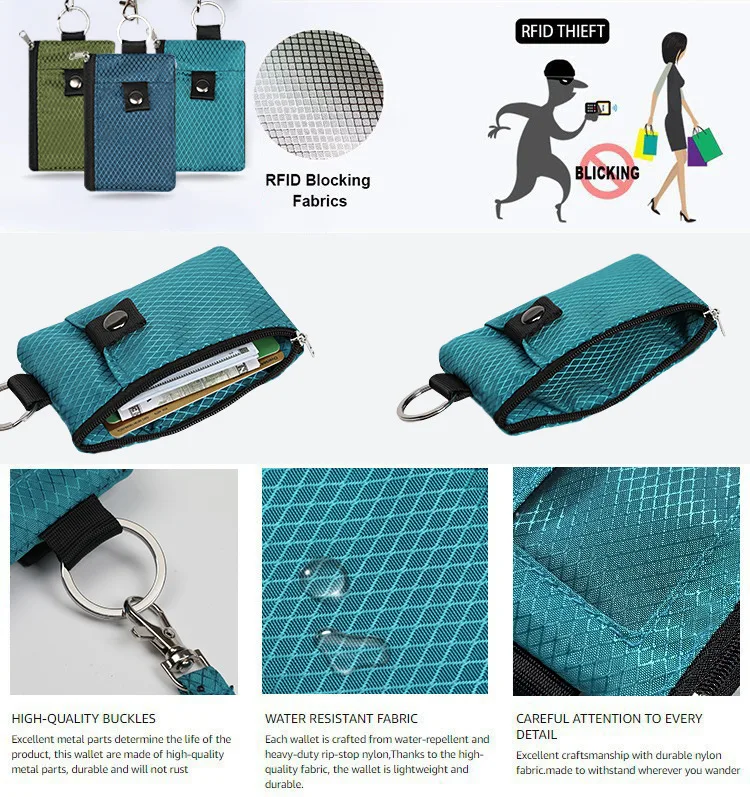 محفظة نقود معدنية محمولة تعمل بتقنية تحديد الهوية بموجات الراديو، حماية إشارة مضادة للسرقة، حقيبة الضرب لبطاقة الائتمان، حقيبة تخزين معلقة لمفتاح سلسلة أذن للأطفال من الجلد
