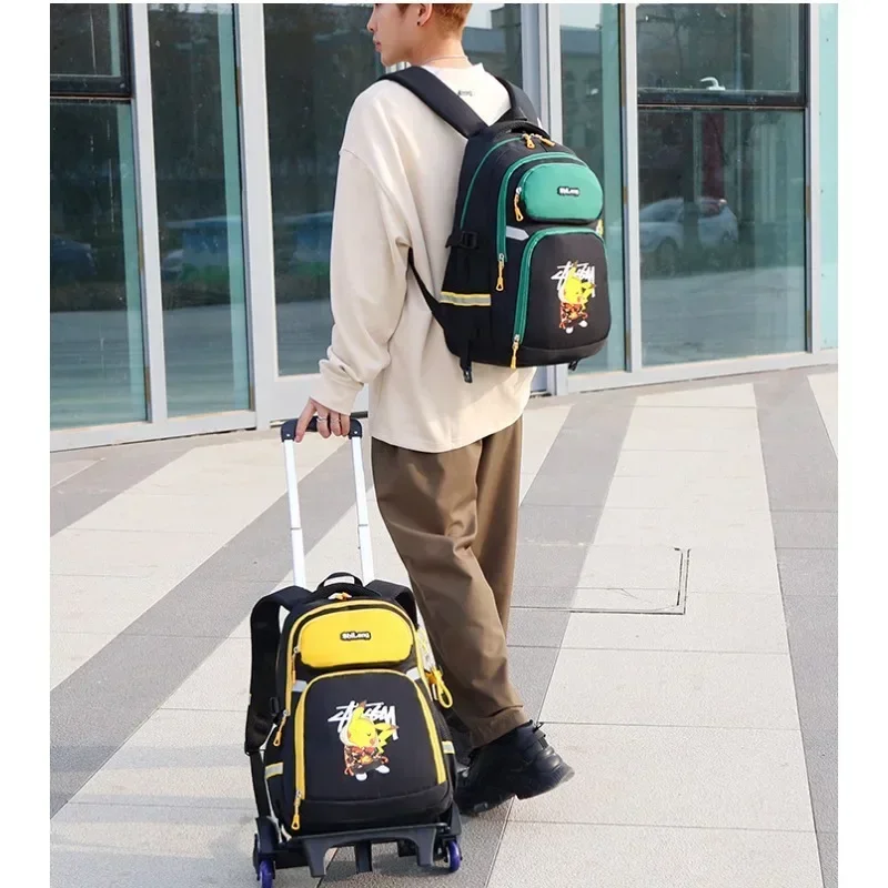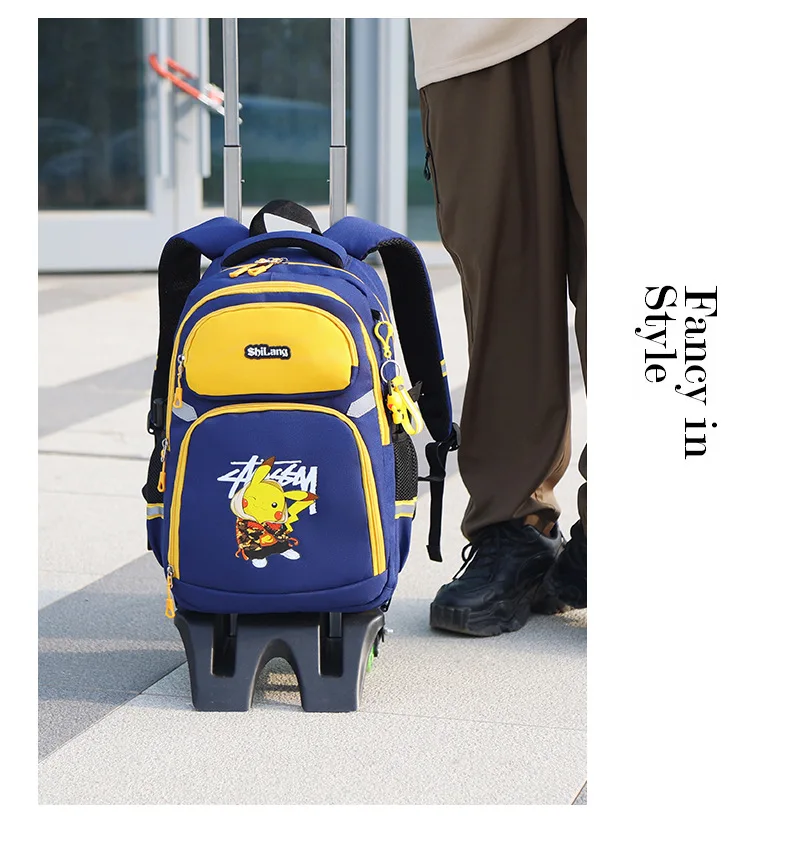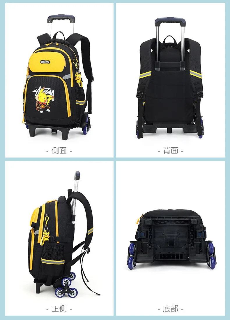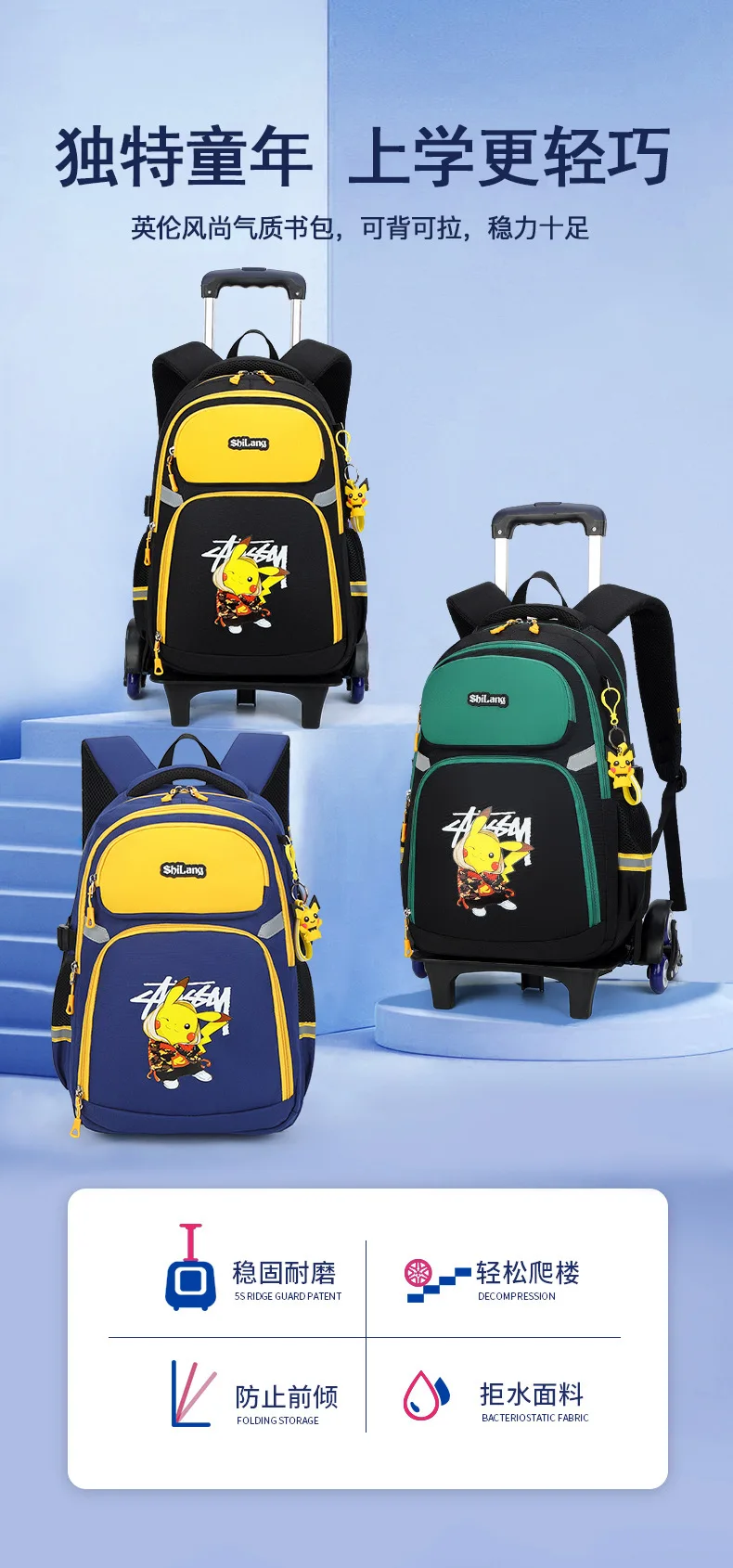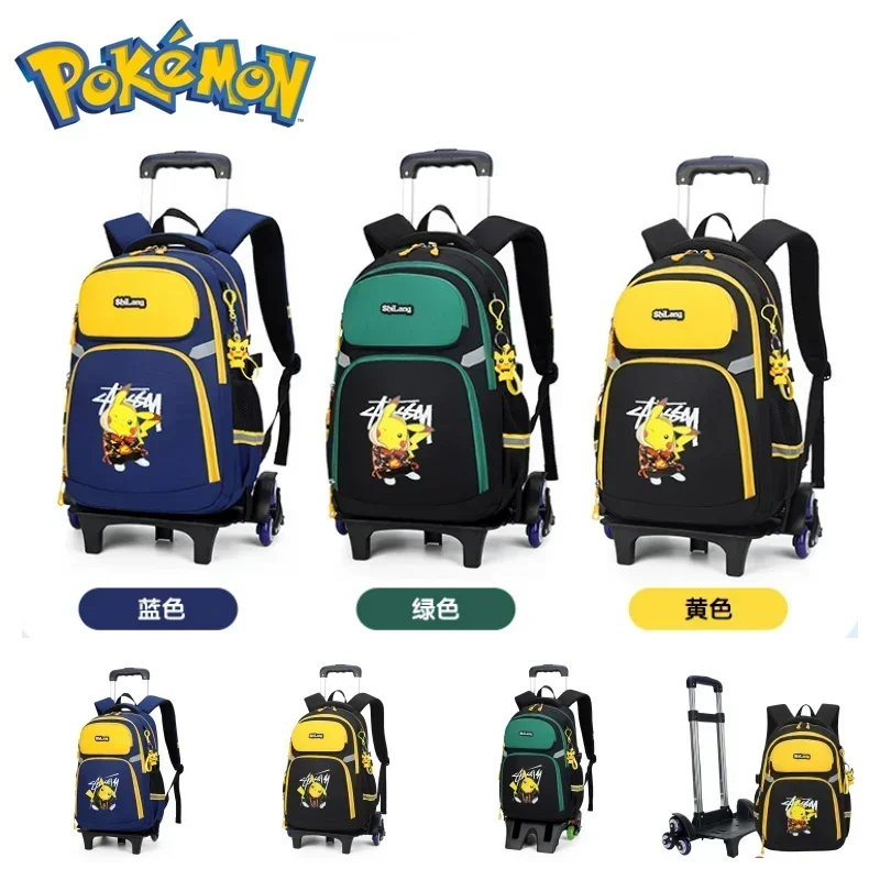 حقيبة مدرسية للأطفال من ميني بوكيمون بيكاتشو ، حقيبة ظهر للأولاد ، صندوق غداء معزول للطلاب ، صندوق أدوات مكتبية ، عربة بست عجلات