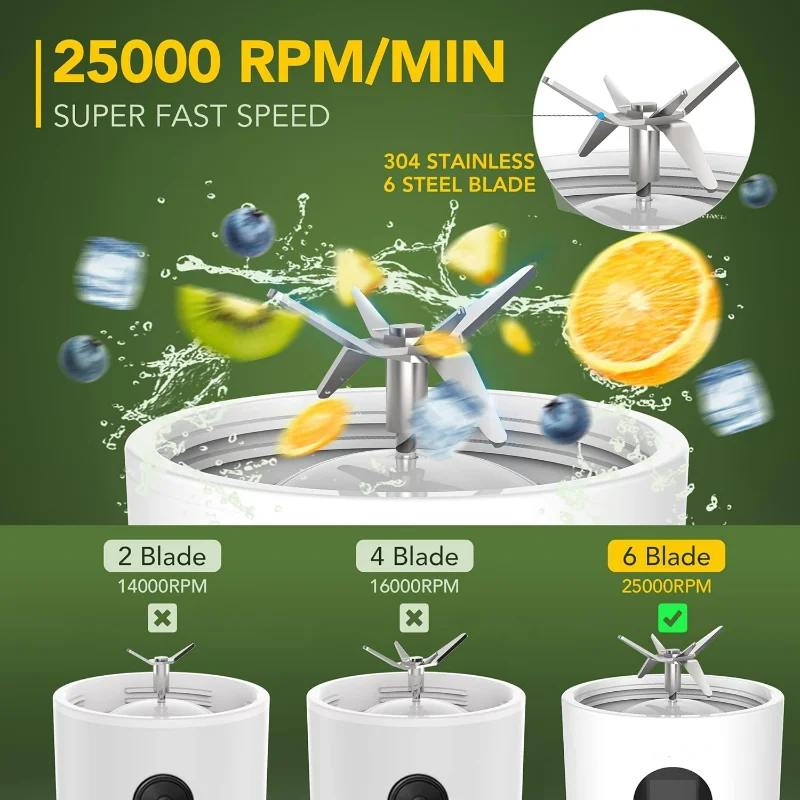 --【???????????????????????????????????????????????????????????????????????????????????????????????????????????????????؟: الخلاط الصغير مجهز بـ 6 قطع من شفرات الفولاذ المقاوم للصدأ 304.مع مستوى أعلى من تردد الدوران: حوالي 25,000 مرة في الدقيقة.يتميز هذا الخلاط بالسرعة السريعة وعمر العمل الطويل، والذي يمكنه تحويل الفواكه والخضروات بسهولة إلى عصير في 20 ثانية.عند العصير، يرجى تقطيع الفاكهة إلى جزيئات مقاس 1.5 × 1.5 سم.إذا كنت ترغب في صنع الكعك أو العصائر، نقترح عليك استخدام الثلج المطحون.