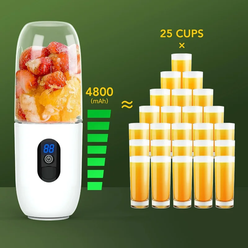 3.امزج المخفوقات والعصائر المفضلة لديك دون عناء مع زجاجة الخلاط الصغيرة المحمولة القابلة لإعادة الشحن عبر USB!يبلغ مقاس هذه الزجاجة المدمجة 3.15 بوصة عمق × 3.15 بوصة عرض × 8.86 بوصة ارتفاع وتتميز ببطارية بسعة 4800 مللي أمبير للاستخدام أثناء التنقل.مثالية لأولئك الذين يتنقلون دائمًا.