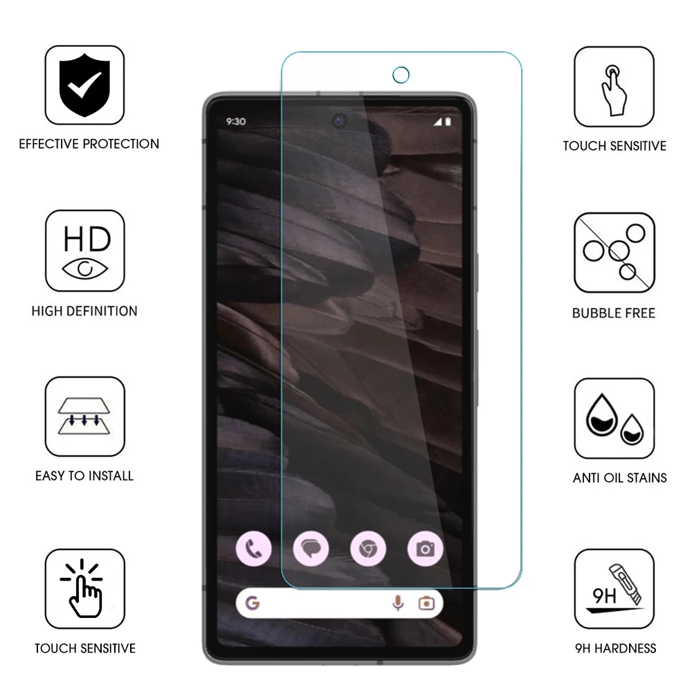 Hd فيلم الزجاج المقسى لجوجل بكسل 7a ، 6a ، 9 برو ، 8pro ، حامي الشاشة ، فيلم عدسة الكاميرا ، pixel8 ، pixel7 قسط 9h