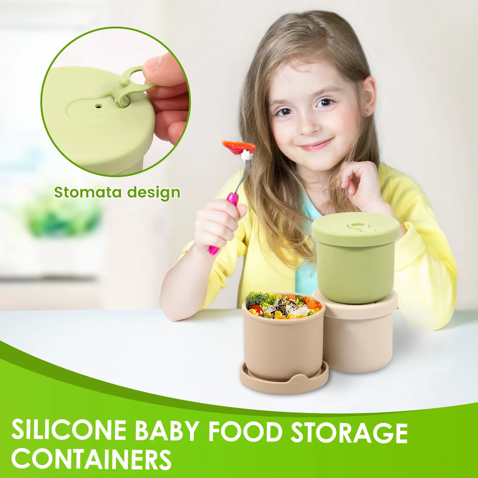 مجموعة حاويات تخزين الطعام من السيليكون مع أغطية هوائية مانعة للتسرب برطمانات تخزين أغذية الأطفال المحمولة للتخييم والوجبات الخفيفة والفواكه صندوق بينتو