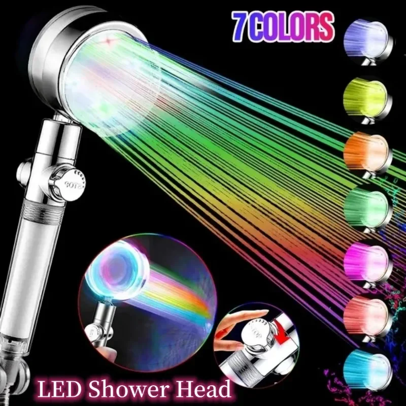 LED 7 ألوان/تحكم في درجة الحرارة 3 رؤوس دش ملونة تتغير اللون تلقائيًا رؤوس دش محمولة لحفظ المياه في الحمام
