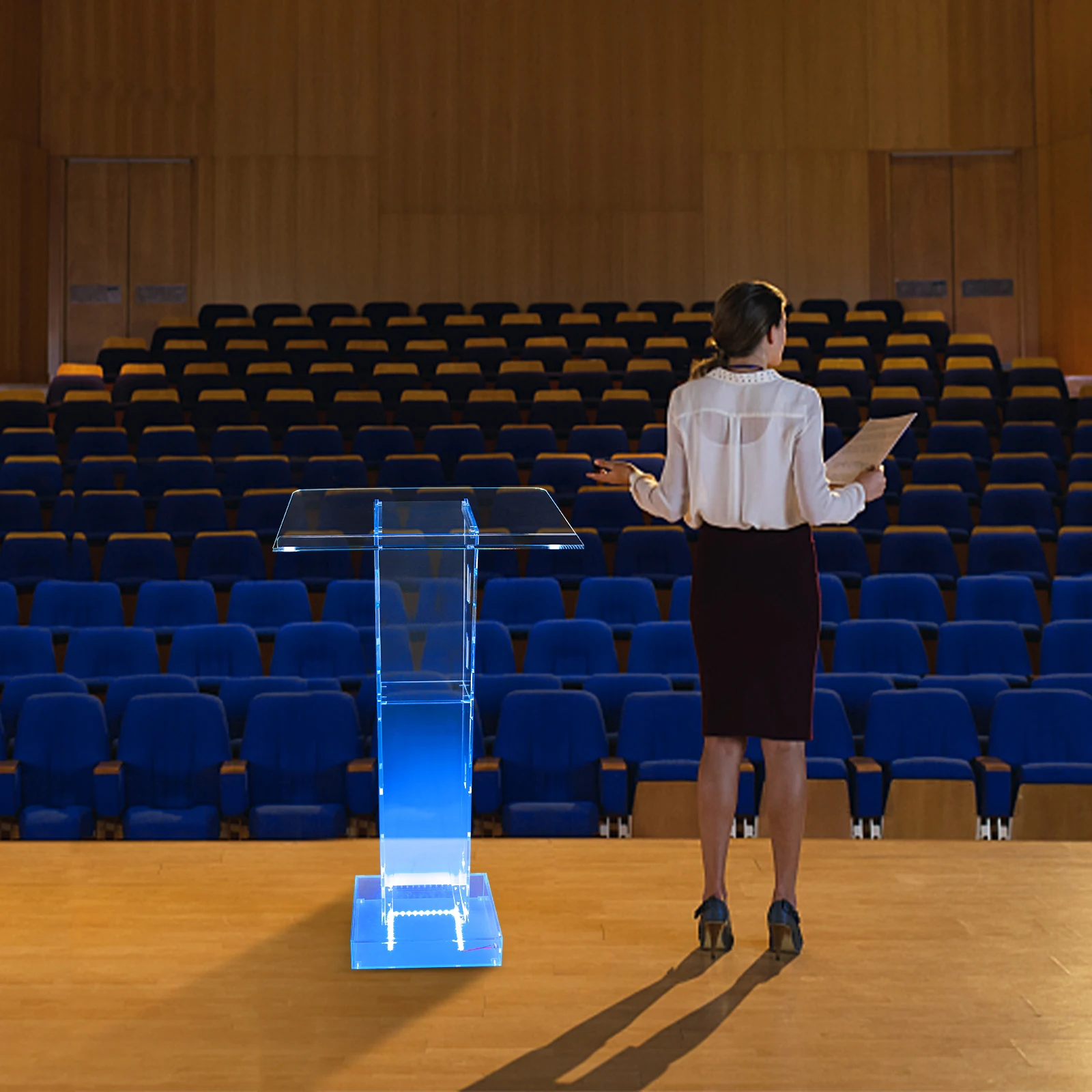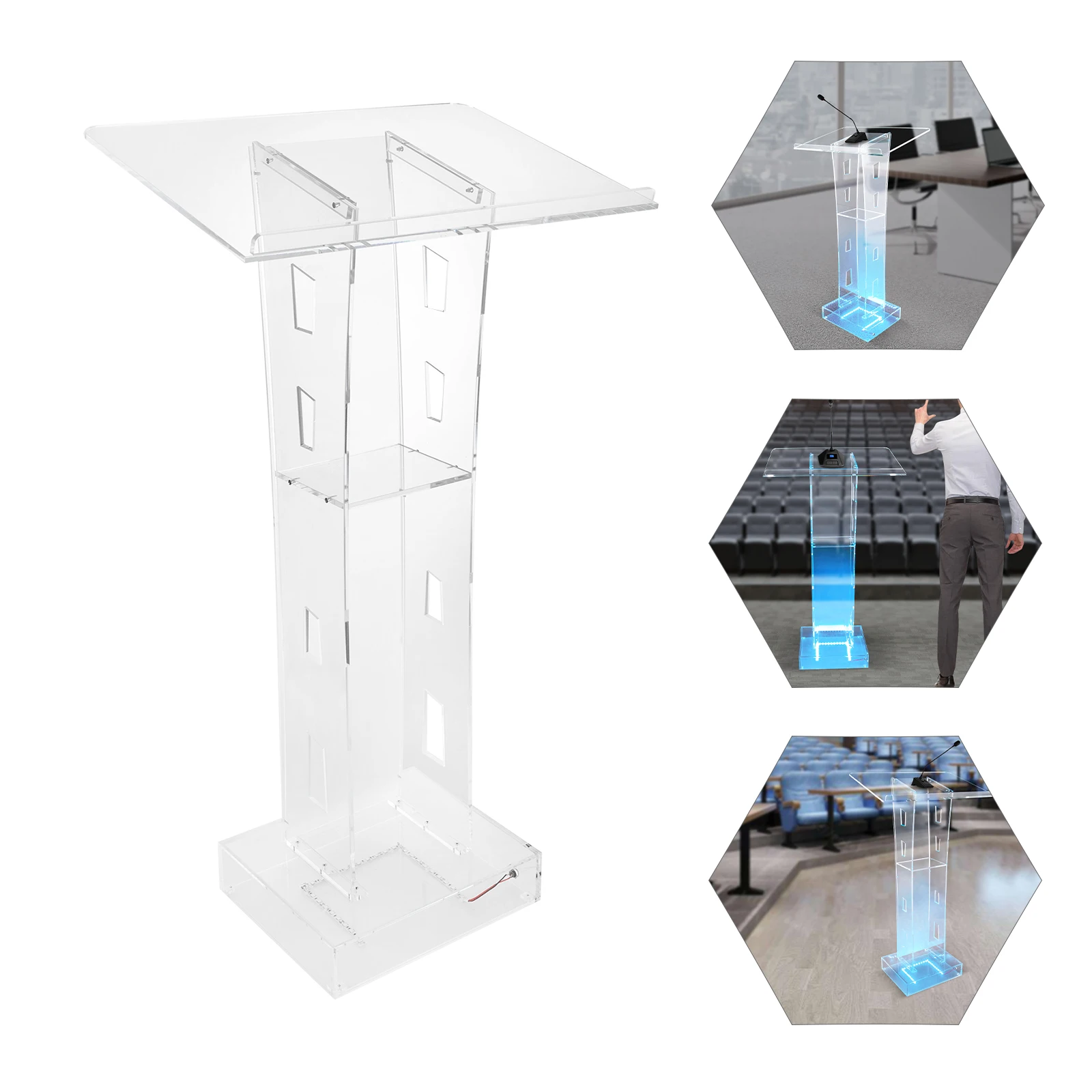 منصة عرض احترافية ستجعل عرضك التقديمي أكثر إقناعًا. ستوفر منصة لوسيت الأكريليك الشفافة هذه بضوء LED أزرق تأثيرًا مرئيًا أكثر إذهالاً للعرض التقديمي. توفر لوحة القراءة المائلة الموسعة والموسعة دعمًا قويًا لعرضك التقديمي السلس. يمكن استخدام لوحة التخزين الإضافية لعقد مواد العرض التقديمي اللازمة للفصل التالي أو توزيع الكتيبات.