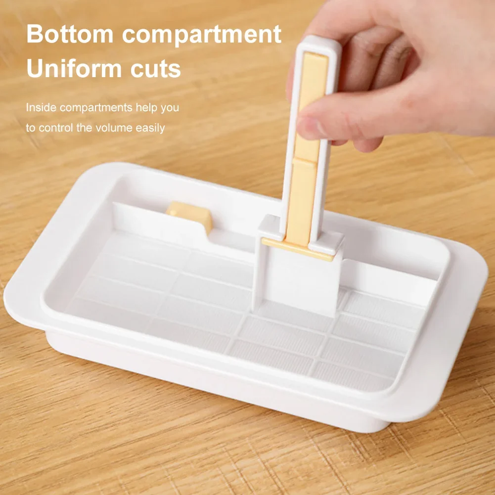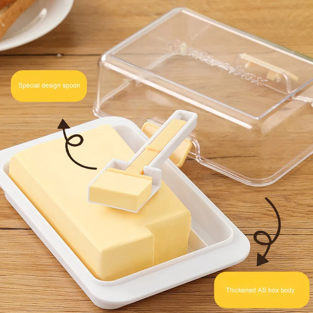 2. ملعقة تقطيع دقيقة:تتميز ملعقة التقطيع المدمجة بقياسات واضحة، مما يسمح للمستخدمين بقطع كميات دقيقة من حاوية حفظ الزبدة بسهولة، مما يقلل من النفايات ويلبي متطلبات الوصفات المختلفة دون عناء.