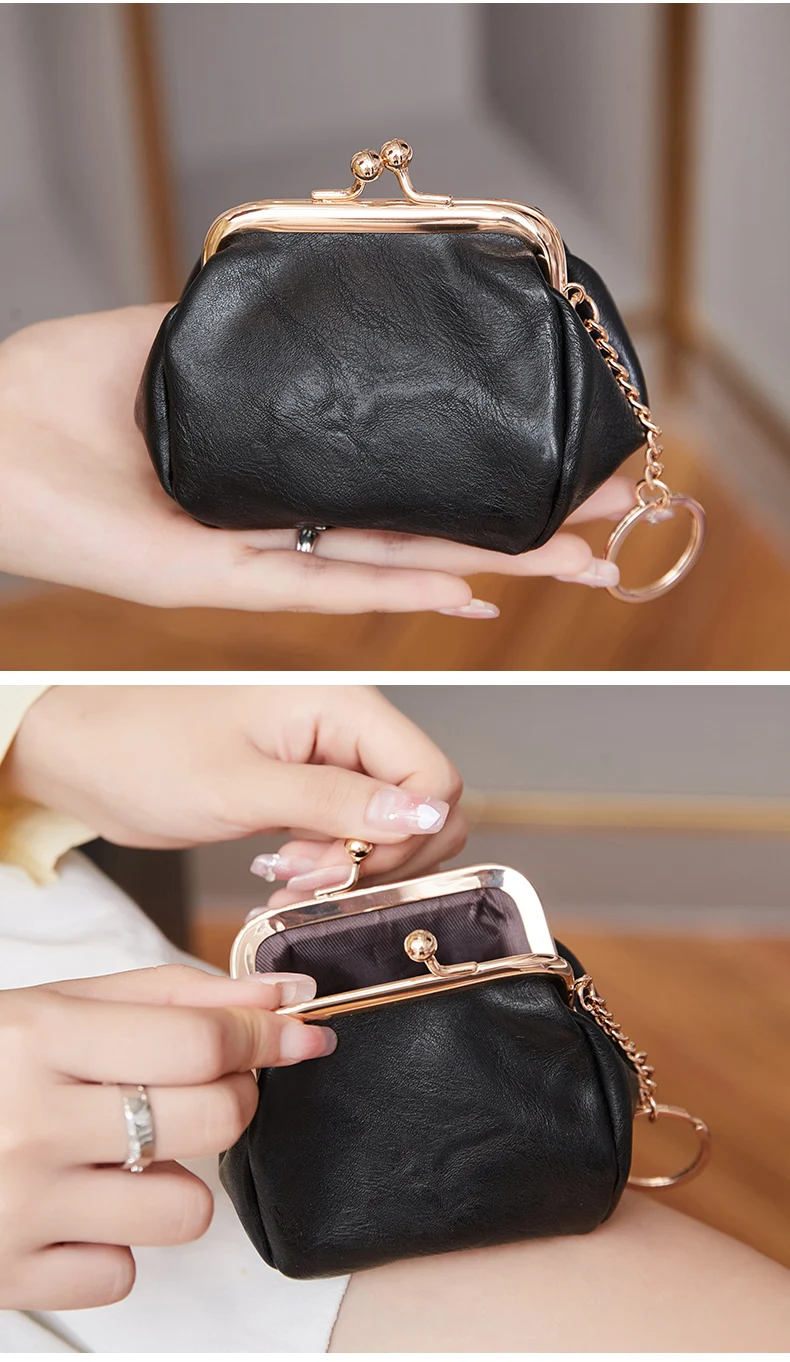 محفظة نقود معدنية بمشبك قفل صغير ريترو، حقيبة تخزين محمولة ولطيفة للاستخدام اليومي للفتيات، حقيبة مفاتيح بسيطة بلون موحد