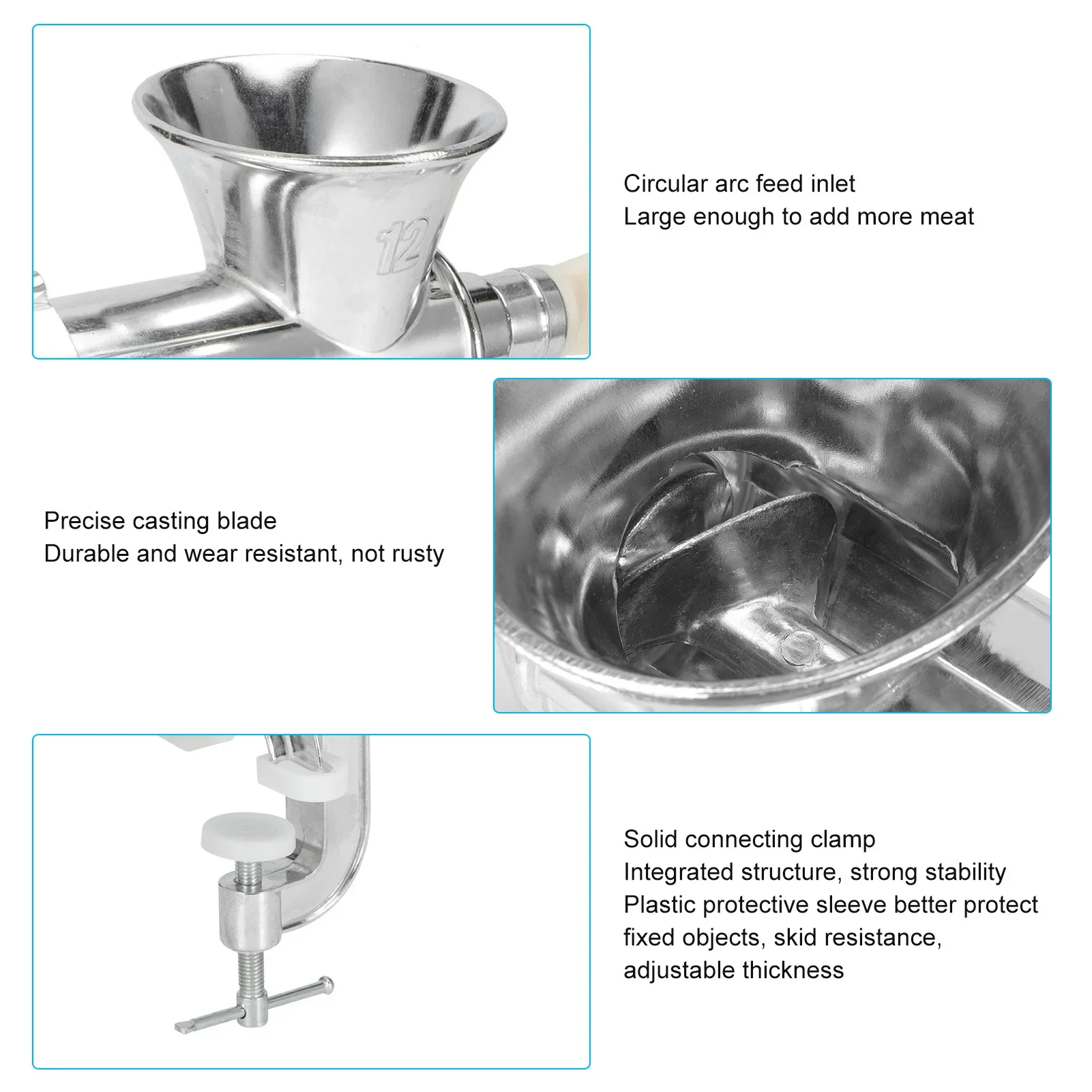 3.مطحنة اللحم المنزلية، تعتمد هيكل سبائك الألومنيوم، قوي ومتين وعمر خدمة طويل.