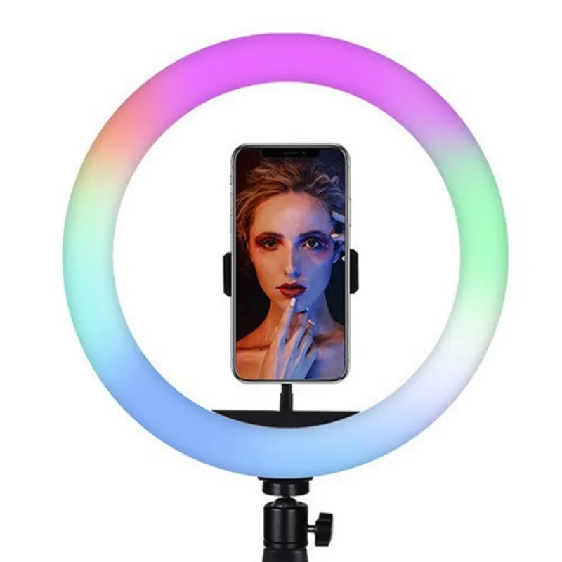 8/10 بوصة Selfie مصباح مصمم على شكل حلقة RGB ترايبود حامل هاتف حامل التصوير RingLight دائرة ملء ضوء Led اللون مصباح Trepied ماكياج