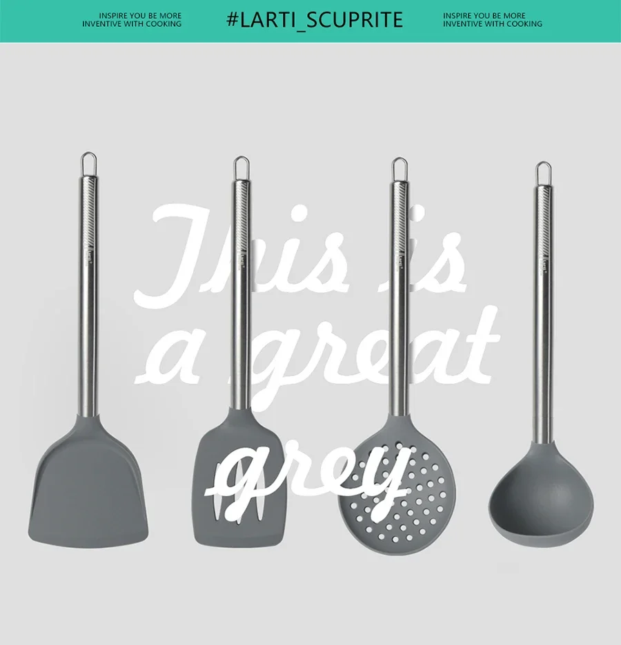 مجموعة أدوات المطبخ مصنوعة من مادة السيليكون الملائمة للطعام والفولاذ المقاوم للصدأ. مقاومة لدرجات الحرارة العالية وعدم الصمغ، لن تضر مقعدك. بدون رائحة وصديقة للبيئة، وآمنة للاستخدام وسهلة التنظيف.