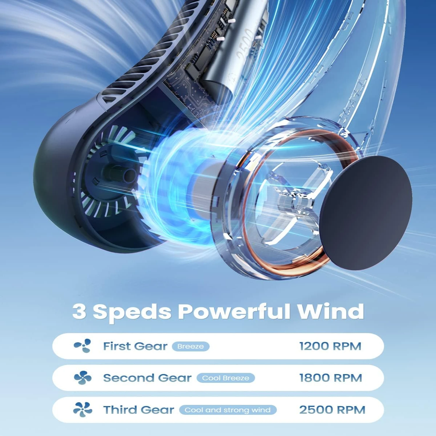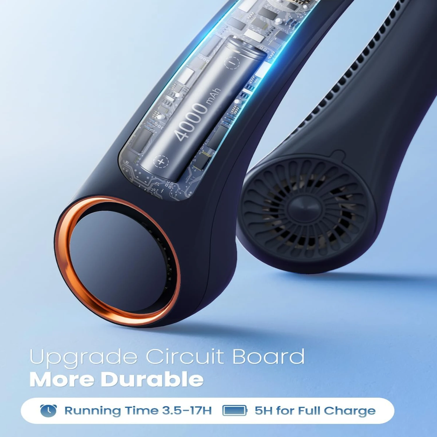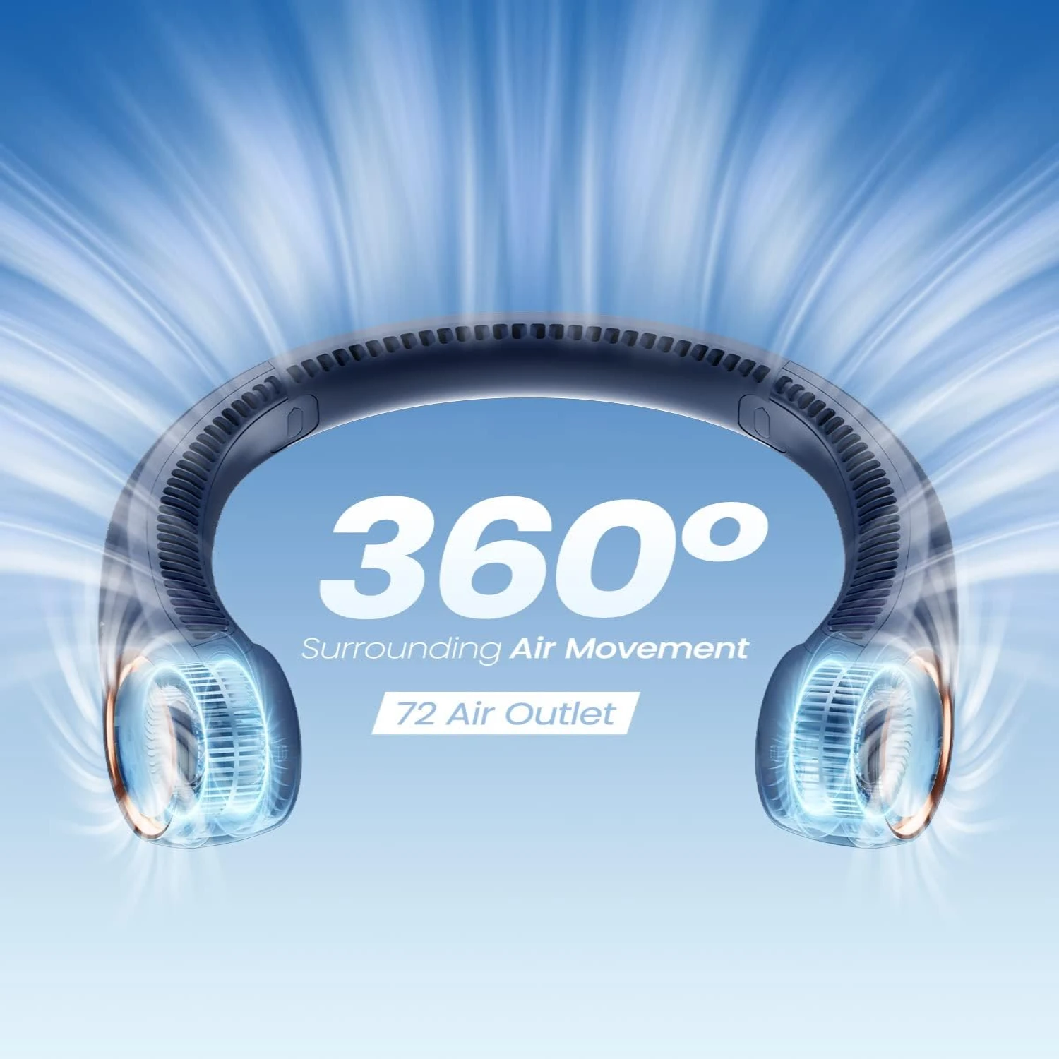 3.استمتع بالراحة القصوى مع مروحة الرقبة ذات الرقبة الزرقاء العميقة.بفضل التصميم الأنيق بدون شفرات و3 سرعات قابلة للتعديل، توفر هذه المروحة نسيمًا رائعًا أينما كنت في حاجة إليها.مثالي للمطبخ أو غرفة النوم أو غرفة المعيشة أو المكتب.