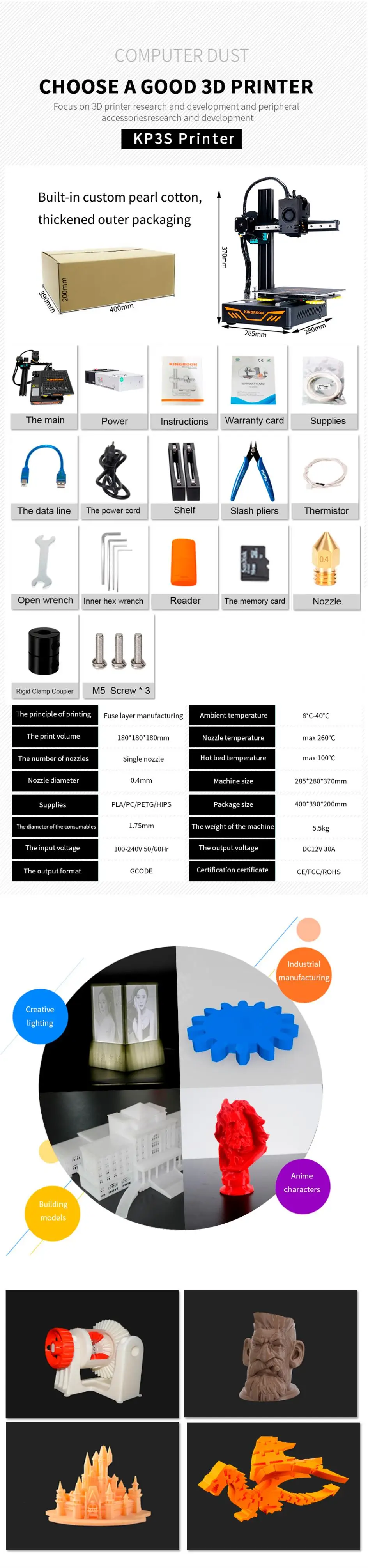 الأعلى: طابعة KP3S ثلاثية الأبعاد طباعة عالية الدقة مطورة لتقوم بها بنفسك طقم طابعة FDM ثلاثية الأبعاد شاشة تعمل باللمس KP3S حجم الطباعة 180*180*180 مللي متر