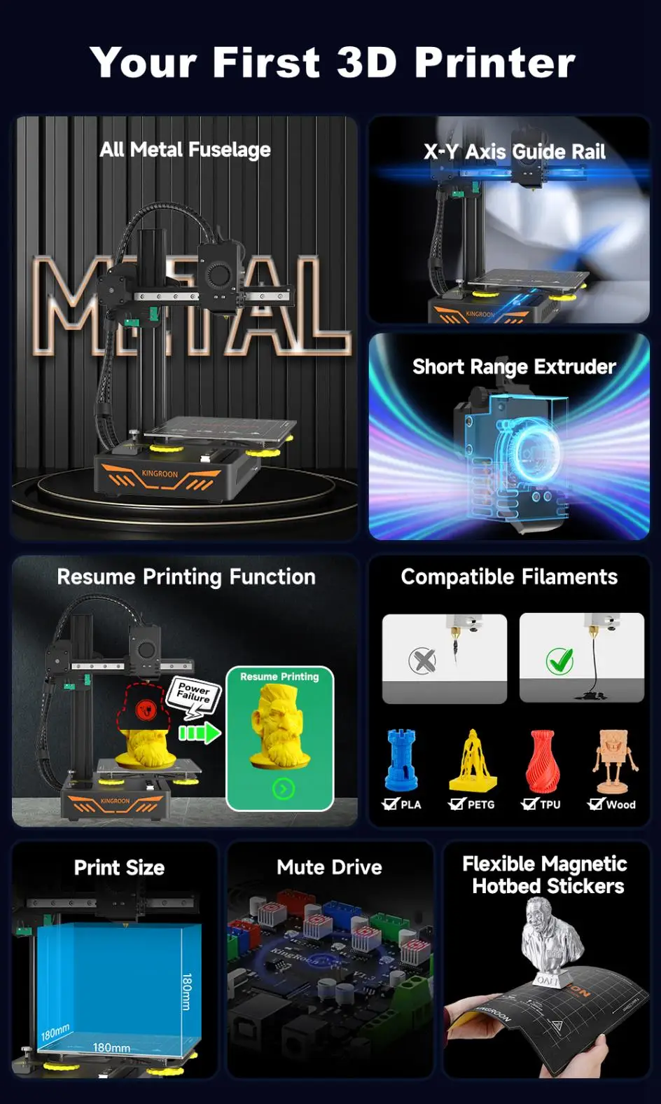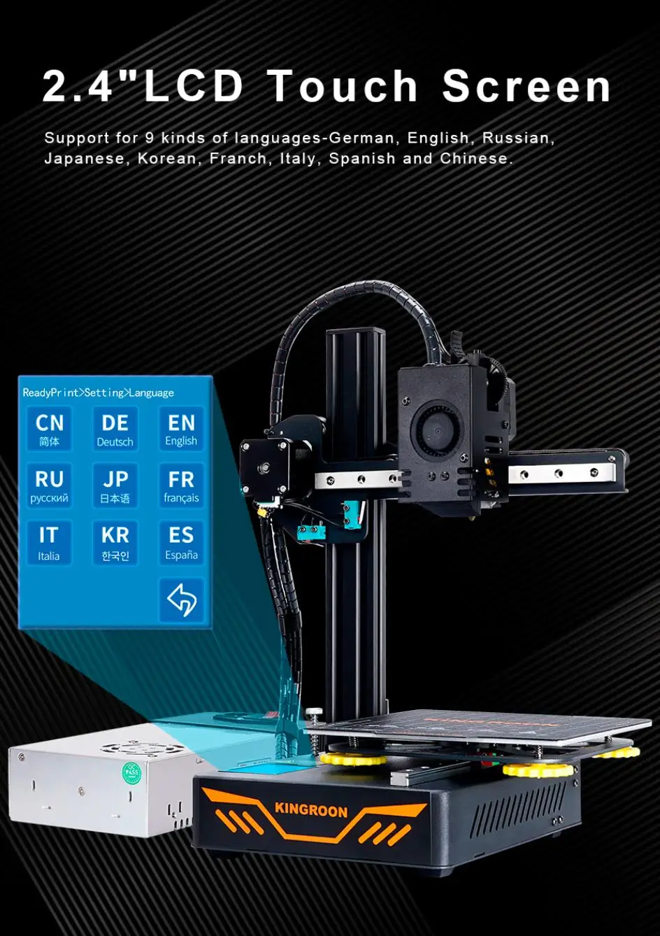 طابعة KingRoon ثلاثية الأبعاد KP3S محرك مباشر طارد ثنائي التبريد مراوح هادئة قضبان دليل معدنية مزدوجة 180*180*180 مللي متر شاشة LCD تعمل باللمس