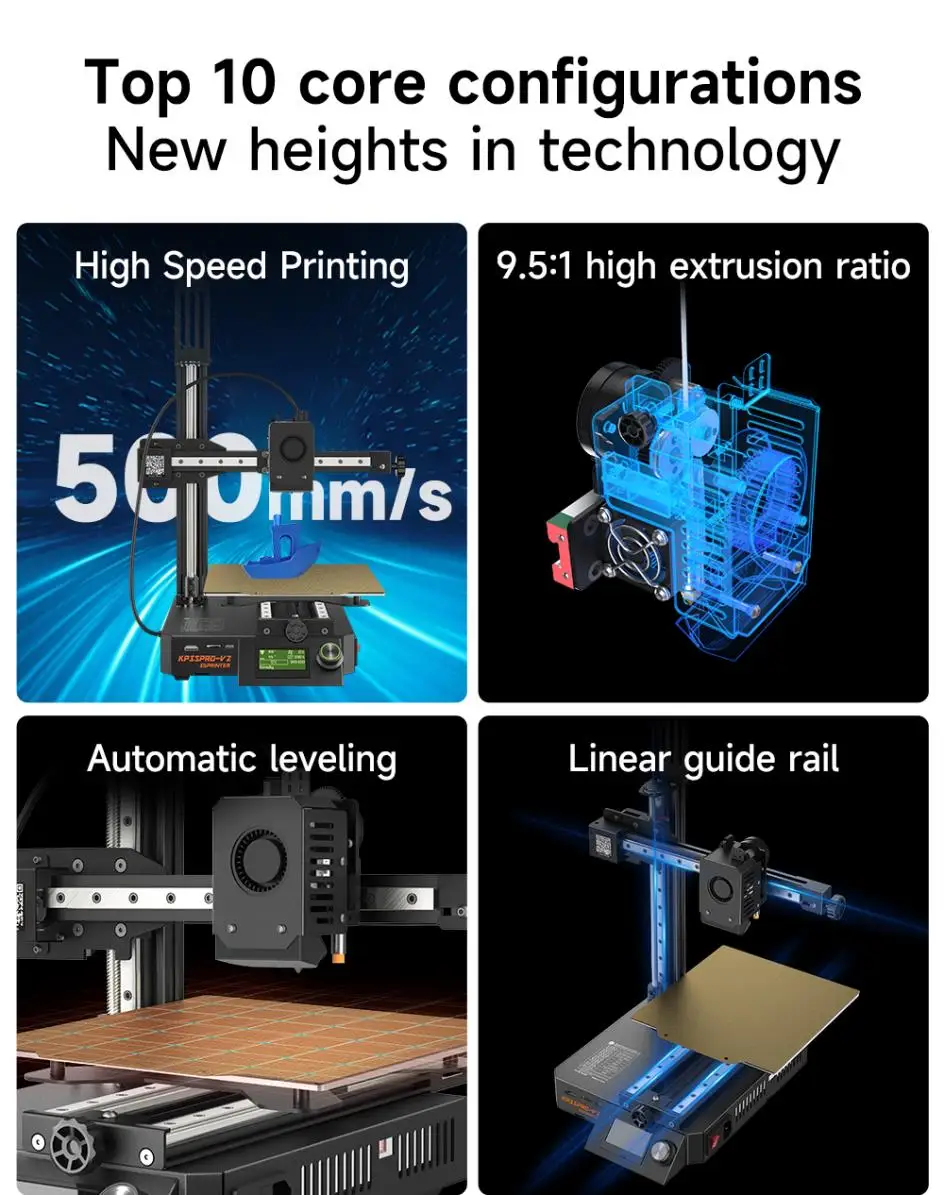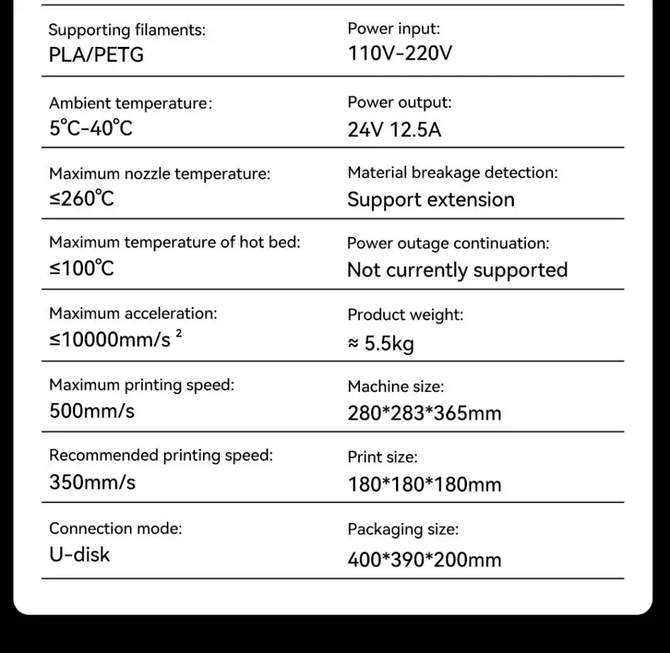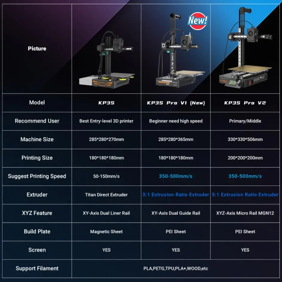 يعتمد V1 على الهيكل العام الأصلي لـ KP3S ويحتوي على وحدة طباعة سريعة مطورة جديدة تمامًا.كما أنه يعطي الأولوية لضمان استقرار الجهاز أثناء الطباعة عالية السرعة.سيكون تصميم المظهر العام أكثر إيجازًا، ولكن السعر تنافسي للغاية، مما يجعله الجهاز الأكثر فعالية من حيث التكلفة بين الطابعات عالية السرعة.
