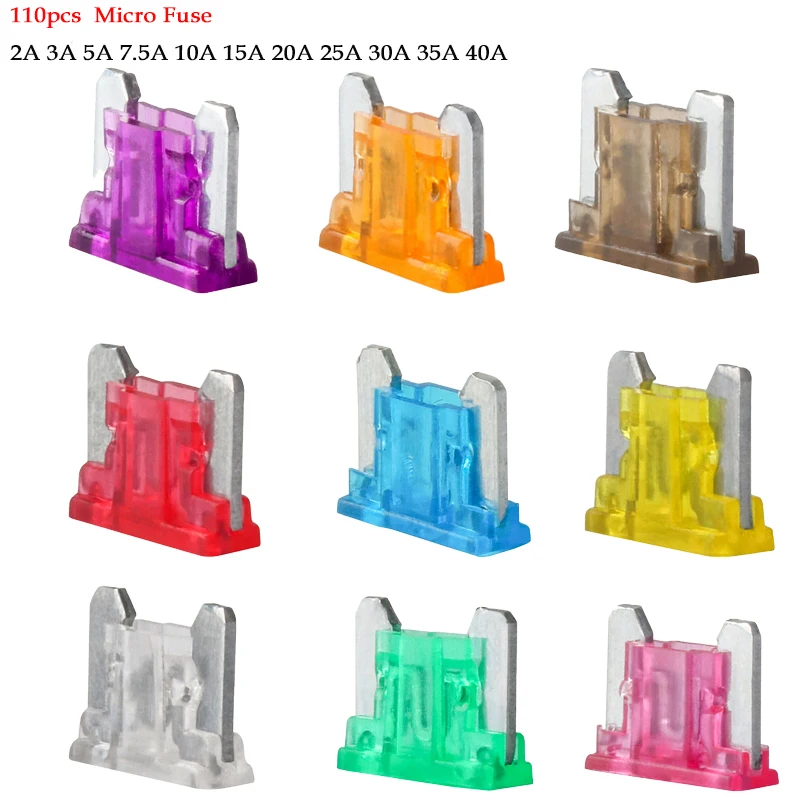 100/50/10 قطعة مايكرو سيارة الصمامات السيارات شفرة نوع صغير فيوز تشكيلة شفرة فيوز مجموعة 2A 3A 5A 7.5A 10A 15A 20A 25A 30A 35A 40A