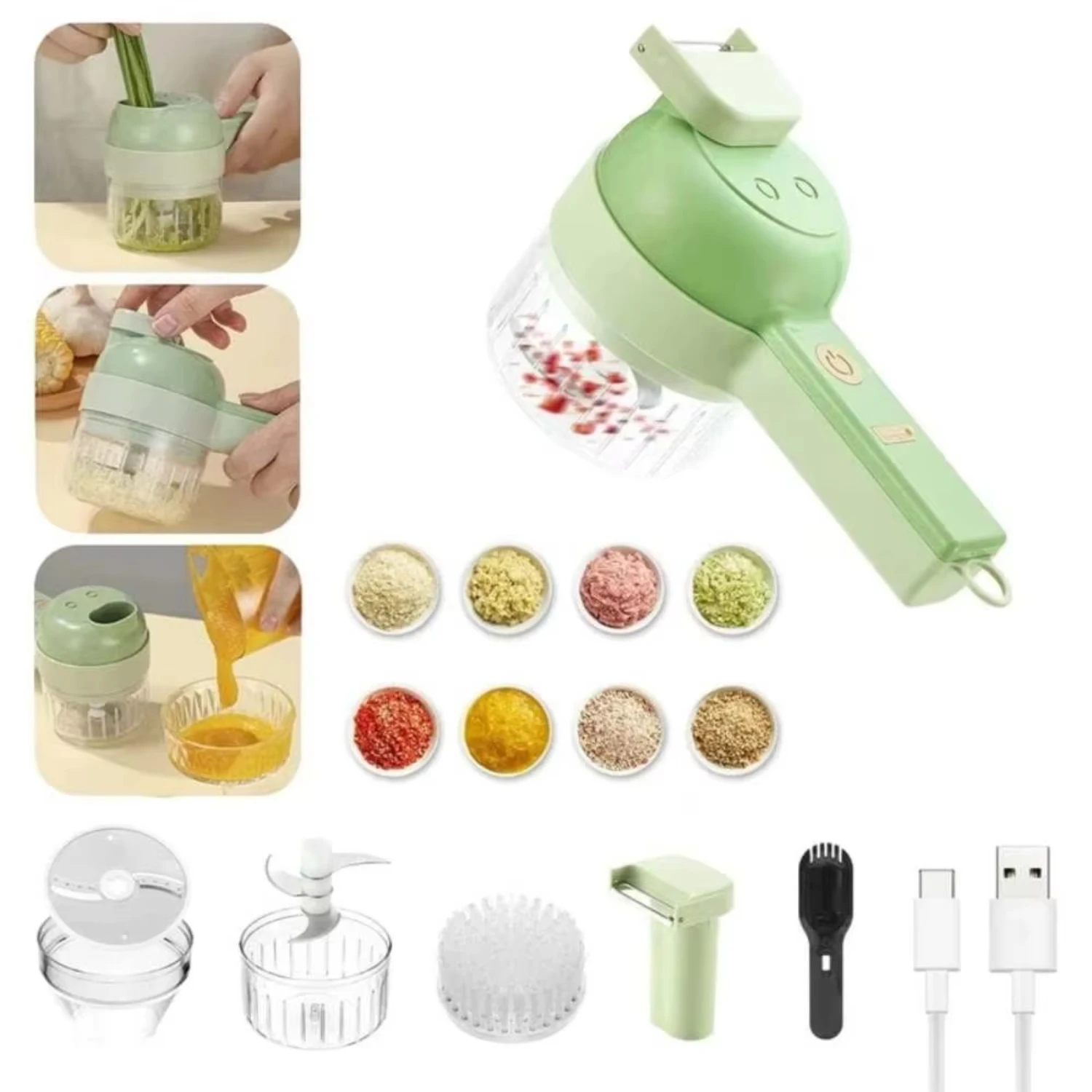 4In1 قطاعة الخضراوات مجموعة يده اللاسلكية الثوم مهروسة الطعام المروحية مفرمة اللحم آلة الغذاء قشر شريحة الجبن مبشرة