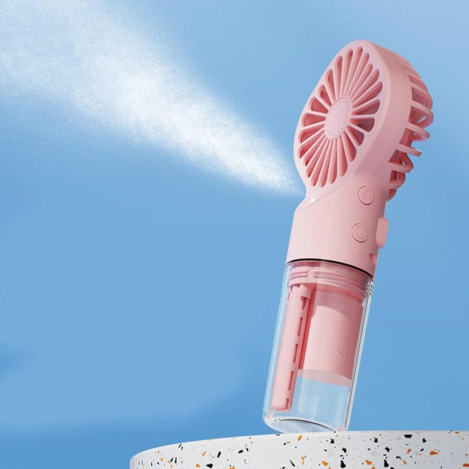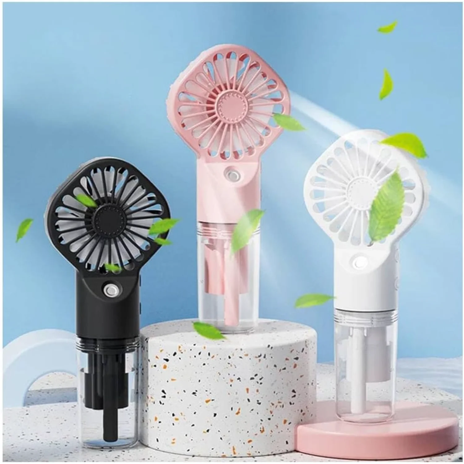 3.حافظ على انتعاشك بأناقة مع مراوح التبريد الخارجية الصغيرة الشخصية، التي تتميز بتصميم مروحة كهربائية أنيق ورذاذ رذاذ منعش.
