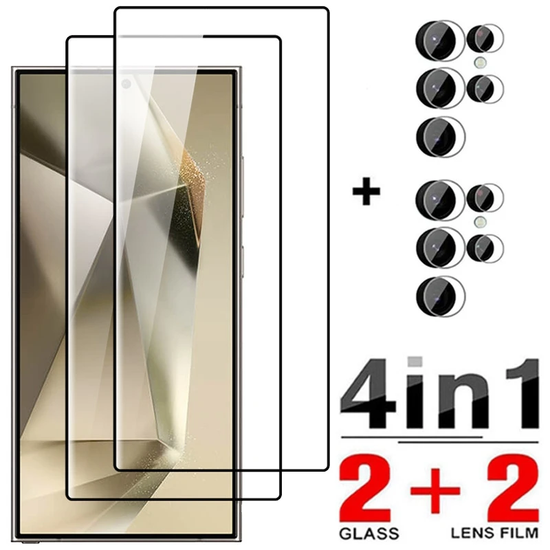 زجاج مقسى لـ Samsung Galaxy S24 Ultra ، غشاء واقي لعدسة الكاميرا ، 4in 1 ، S24 Plus