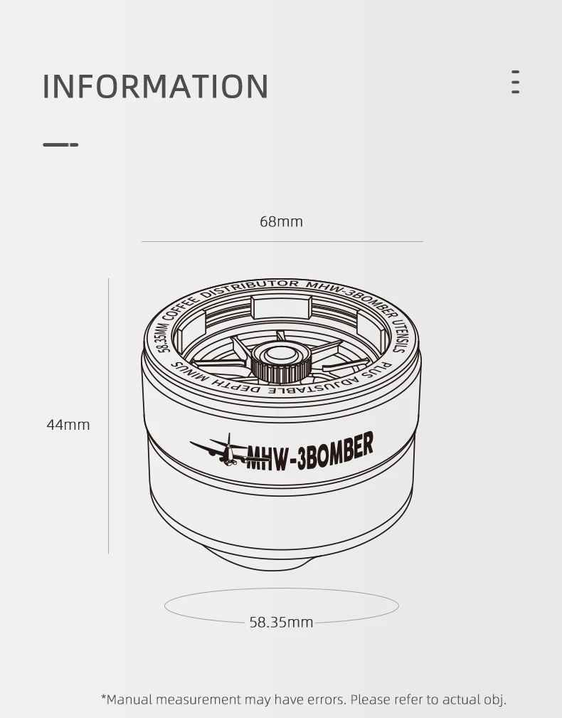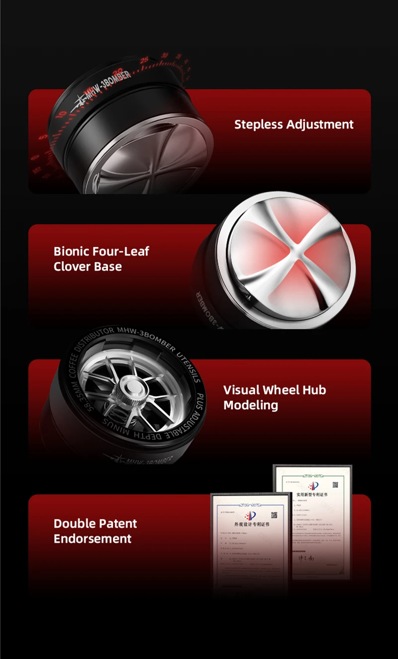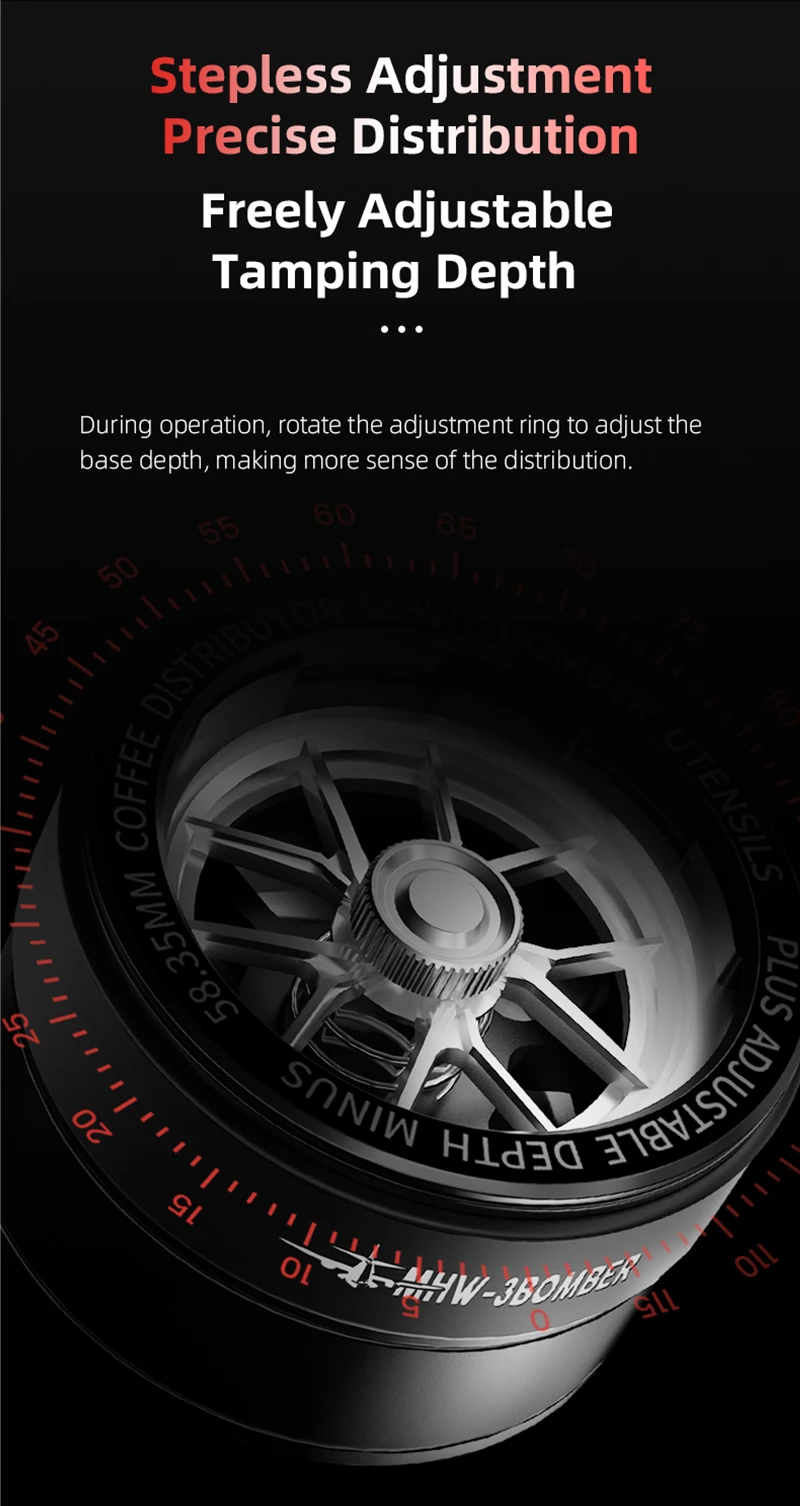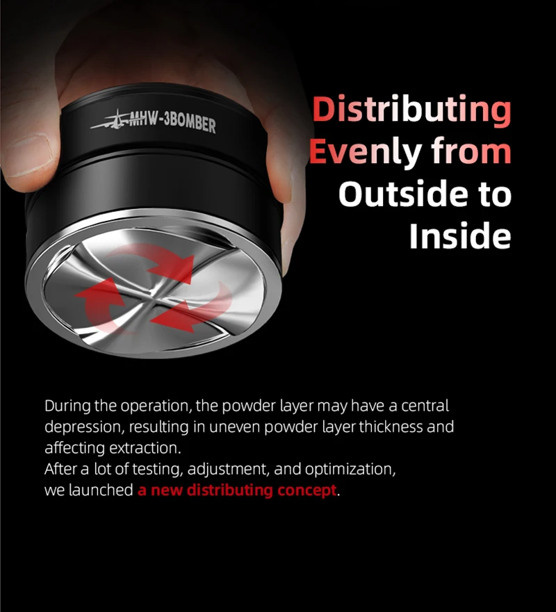 أداة توزيع الإسبريسو MHW-3BOMBER مقاس 58 مم WDT، أدوات توزيع تقليب القهوة القابلة للتعديل مع قاعدة مغناطيسية لباريستا