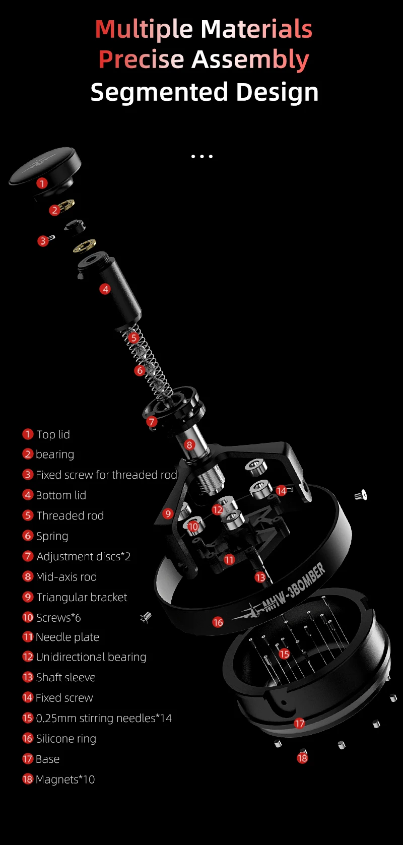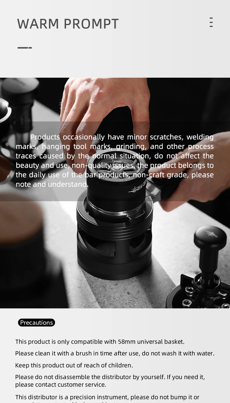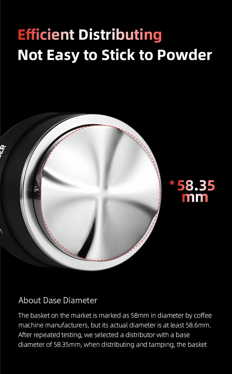 【قاعدة مغناطيسية】تتميز أداة توزيع الإسبريسو مقاس 58 مم لدينا بـ 10 مغناطيسات في القاعدة لامتصاص السلة بدقة، مما يمنع التحول أثناء التوزيع، مما يجعل مسحوق التوزيع أكثر خالية من القلق.