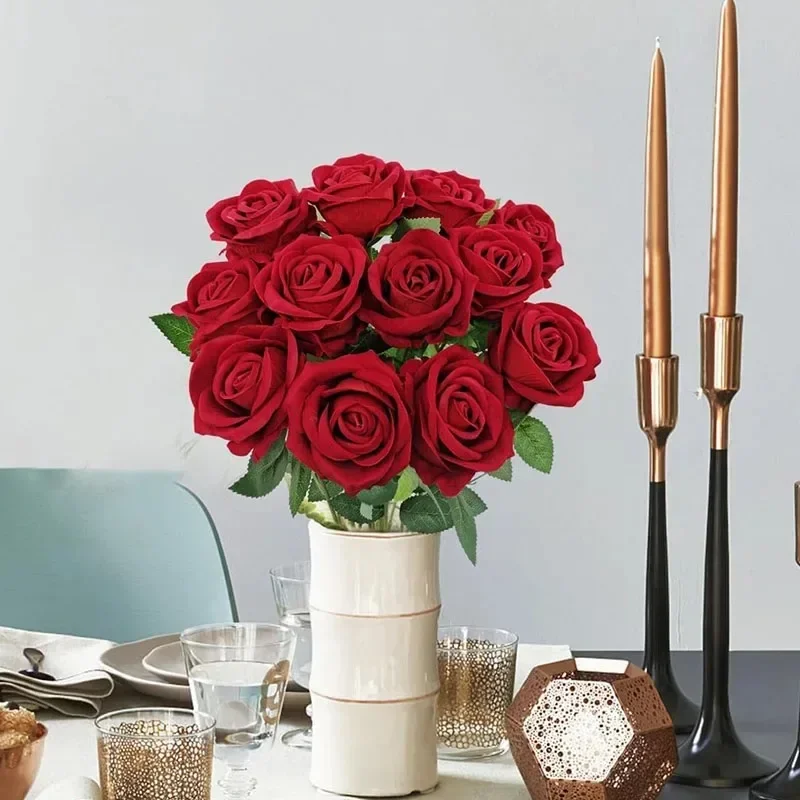 20 قطعة من باقة زهور الورد المصنوعة من الحرير المخملي الاصطناعي ذات مظهر حقيقي ورد صناعي لتزيين حفلات الزفاف المنزلية