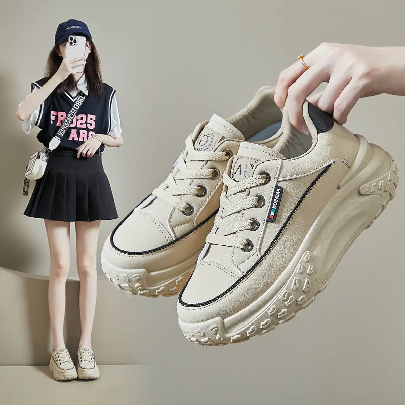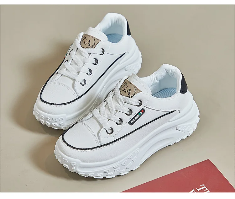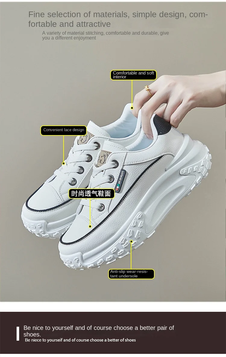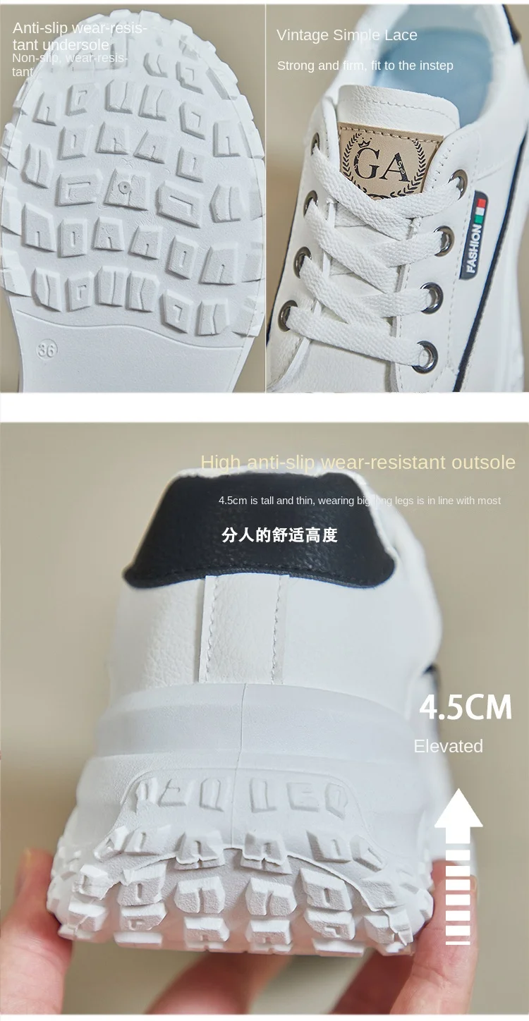 أحذية بيضاء لزيادة الارتفاع للنساء ، نعل سميك ، نسخة كورية ، أحذية رياضية كاجوال للطلاب ، أحذية شارع