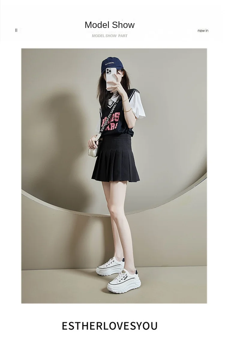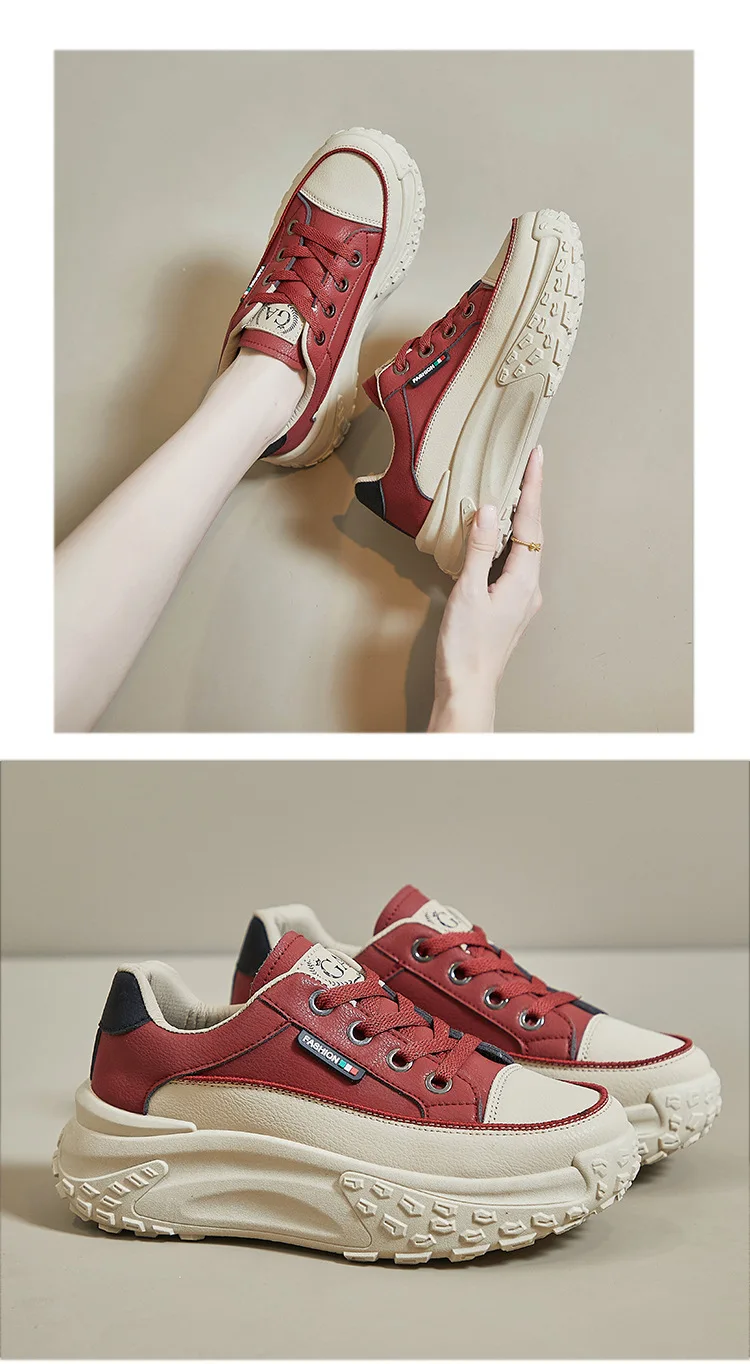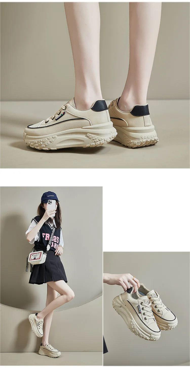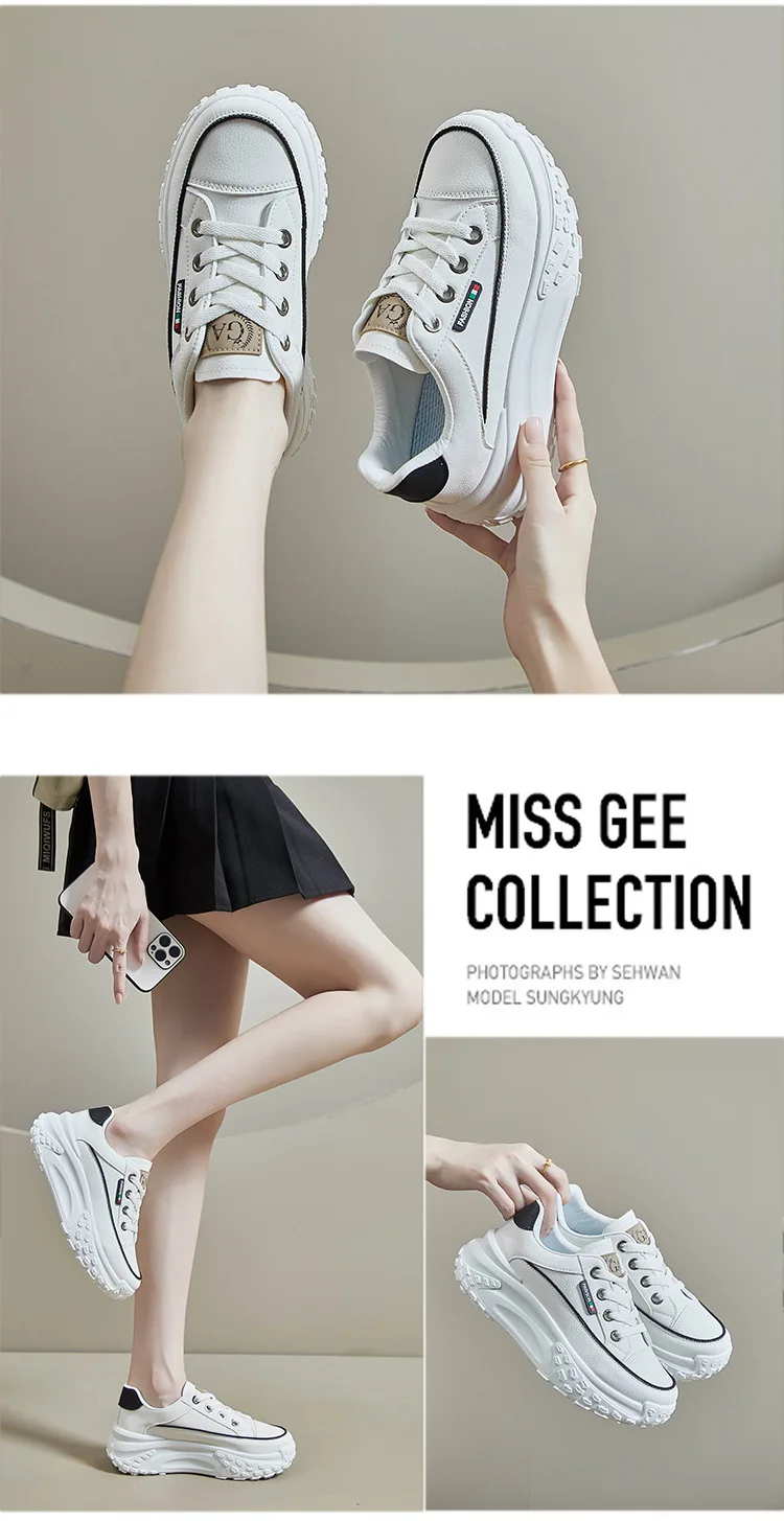 أحذية بيضاء لزيادة الارتفاع للنساء ، نعل سميك ، نسخة كورية ، أحذية رياضية كاجوال للطلاب ، أحذية شارع