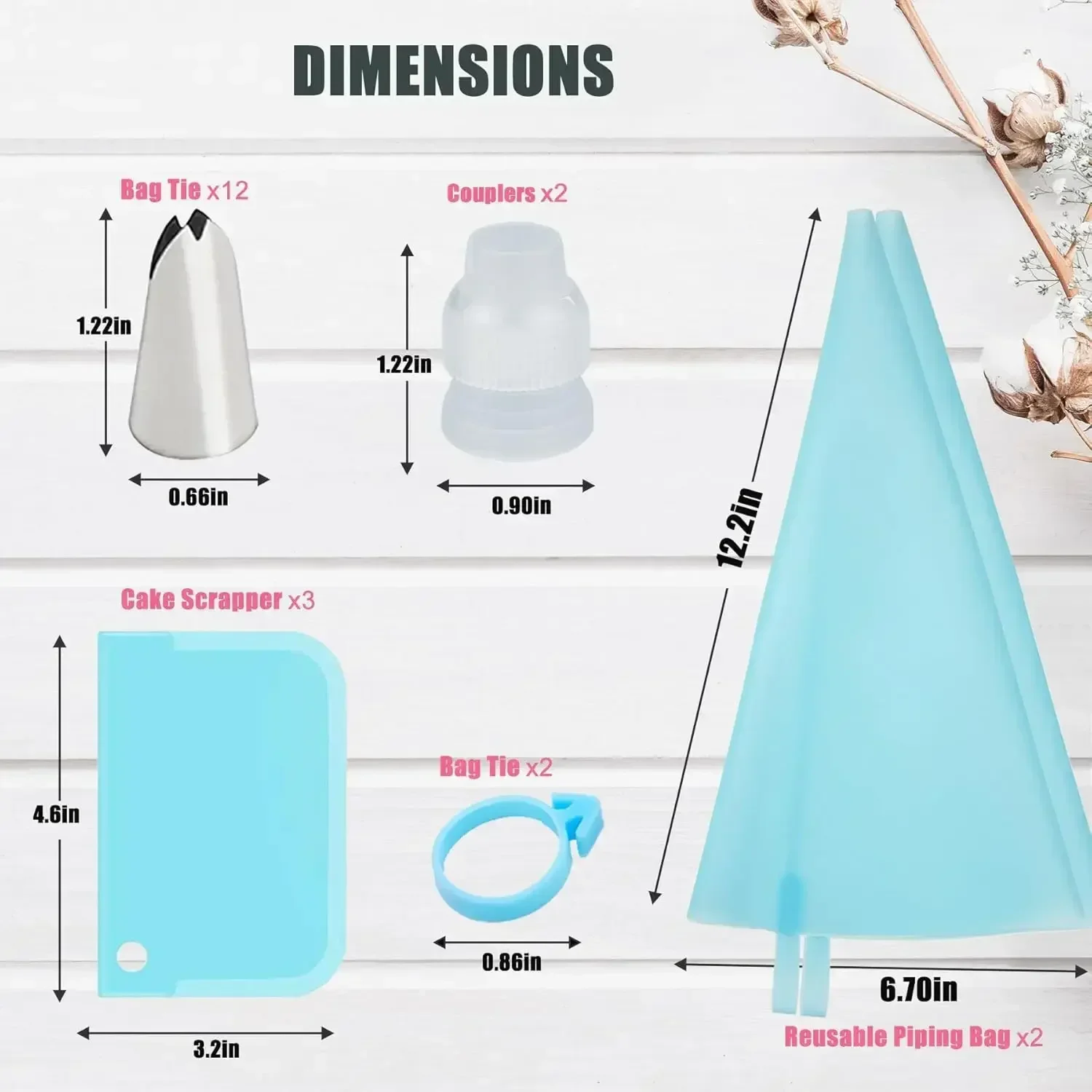 1,مجموعة كيس الأنابيب الكاملة:تشتمل هذه المجموعة على 12 طرف تزيين من الفولاذ المقاوم للصدأ، و2 كيس معجنات سيليكون قابل لإعادة الاستخدام، و2 وصلة بلاستيكية، وحلقتين من السيليكون، و3 مكشطة جانبية للكيك.تحتوي على كل ما تحتاجه لتزيين الخبز بسهولة وبأسعار معقولة.