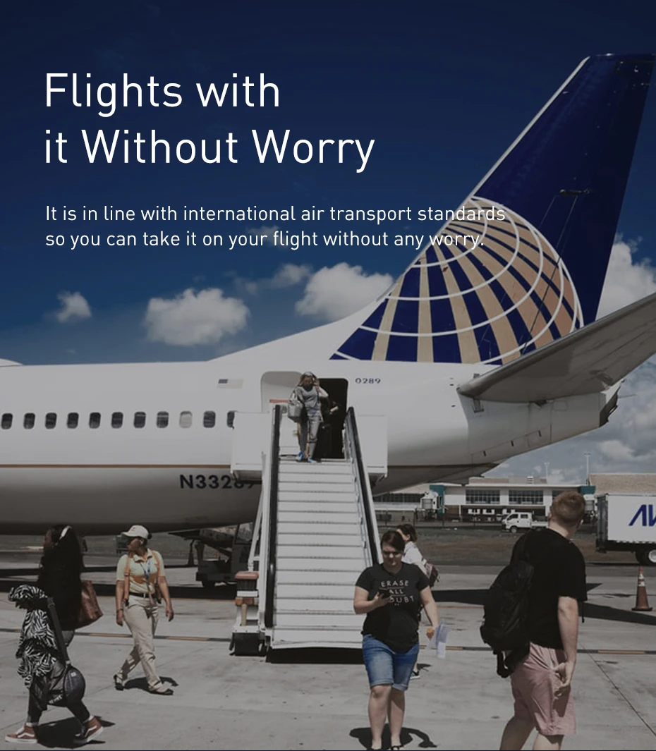 إنها تتماشى مع معايير النقل الجوي الدولية حتى تتمكن من أخذها في رحلتك دون أي قلق.