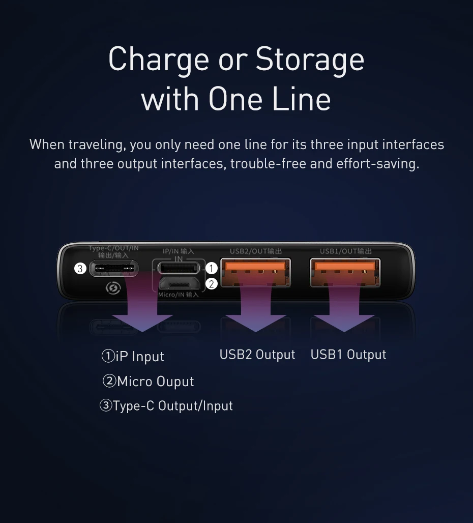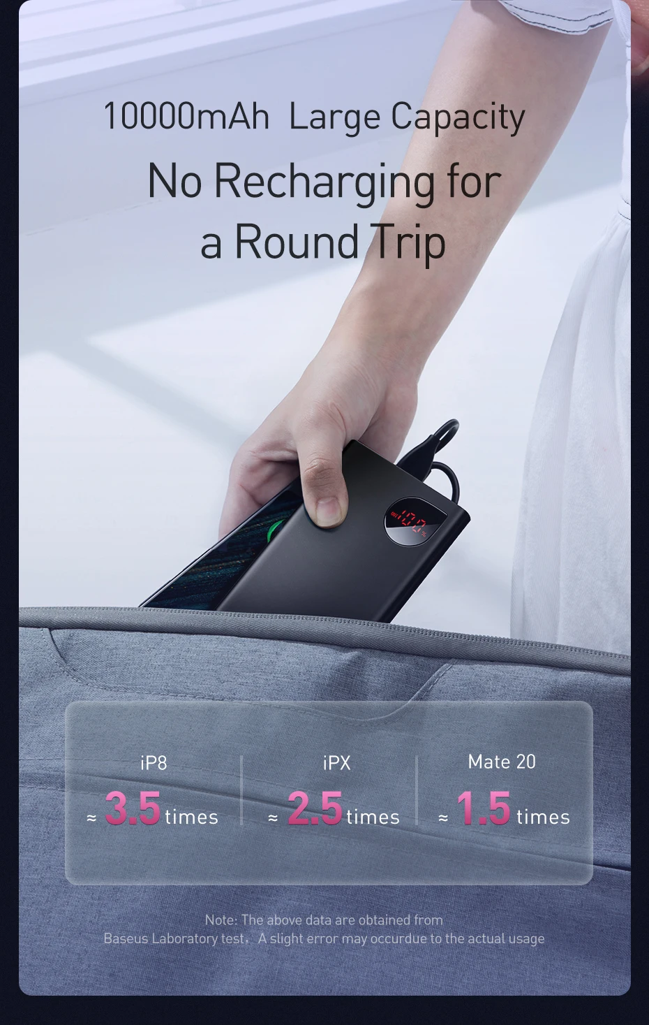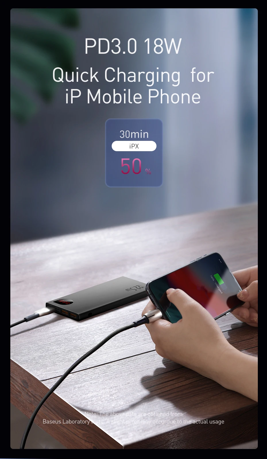 يدعم PD3.0+QC3.0 الشحن السريع ثنائي الاتجاه، كما أن الشحن الذاتي سريع جدًا أيضًا