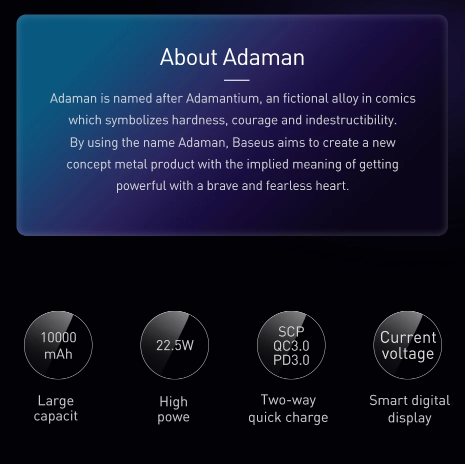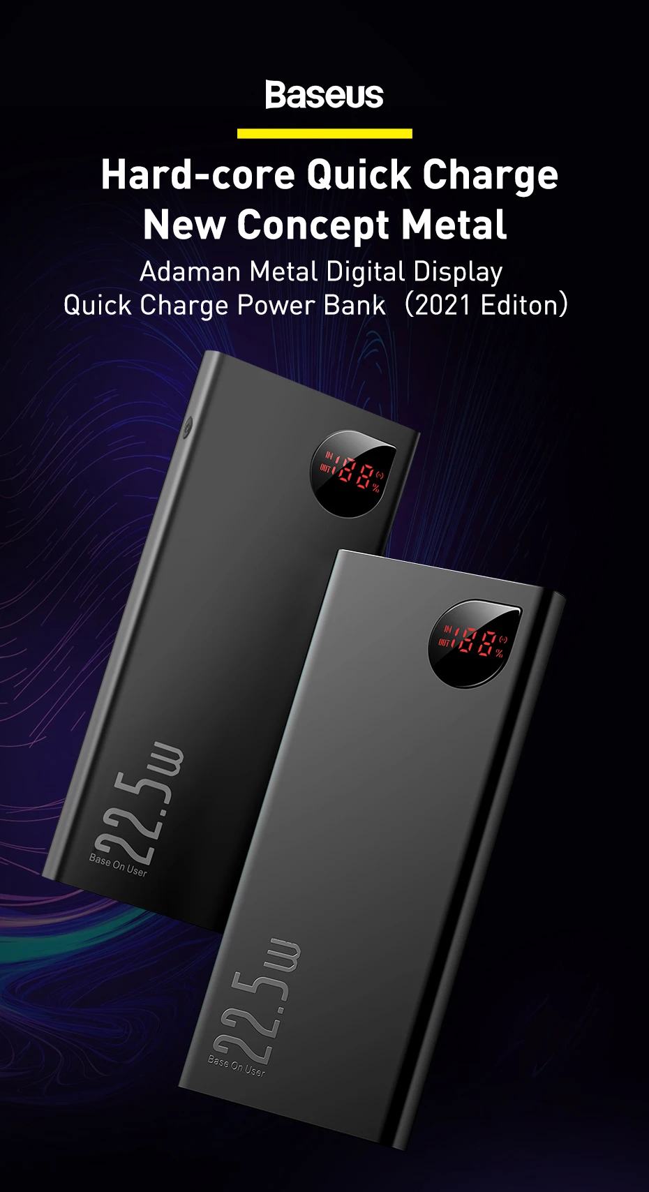 بنك الطاقة Adaman Metal Digital Display للشحن السريع (إصدار 2021)