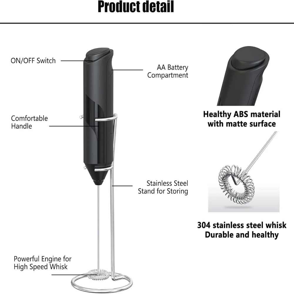 【جودة عالية】جهاز رغوة الحليب الخاص بنا مصنوع من الفولاذ المقاوم للصدأ الآمن غذائيًا، لذلك فهو مقاوم للصدأ تمامًا، والمقبض البلاستيكي خفيف الوزن مصمم هندسيًا للتعامل المريح، وتأتي رغوة الحليب مع حامل من الفولاذ المقاوم للصدأ، ويمكن وضعها بسهولة على كونترتوب، نظيفة ومرتبة.【متعدد الاستخدامات】لا يُنشئ رغوة الحليب للقهوة والكابتشينو والماكياتو فحسب، بل إنه مناسب أيضًا لصنع الشوكولاتة الساخنة والباردة.الحليب المخفوق، شاي الماتشا، المشروبات المختلطة، وحتى لخفق البيض والصلصات.يتم تشغيل خلاط الحليب ببطاريتين AA لذلك ستحتاج إلى القلق بشأن الحبال والتوصيل بالمقابس؛تأتي مع حامل يمكن الاحتفاظ به بسهولة على سطح الطاولة