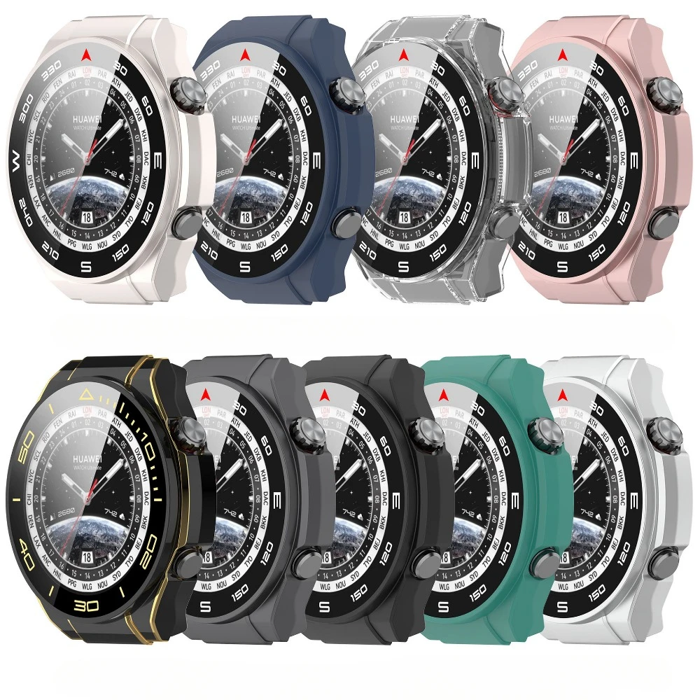 حافظة كمبيوتر + زجاج مقسى لساعة Huawei WATCH Ultimate غطاء كامل واقي شاشة Smartwatch الوفير تنظيف القطن لـ ***