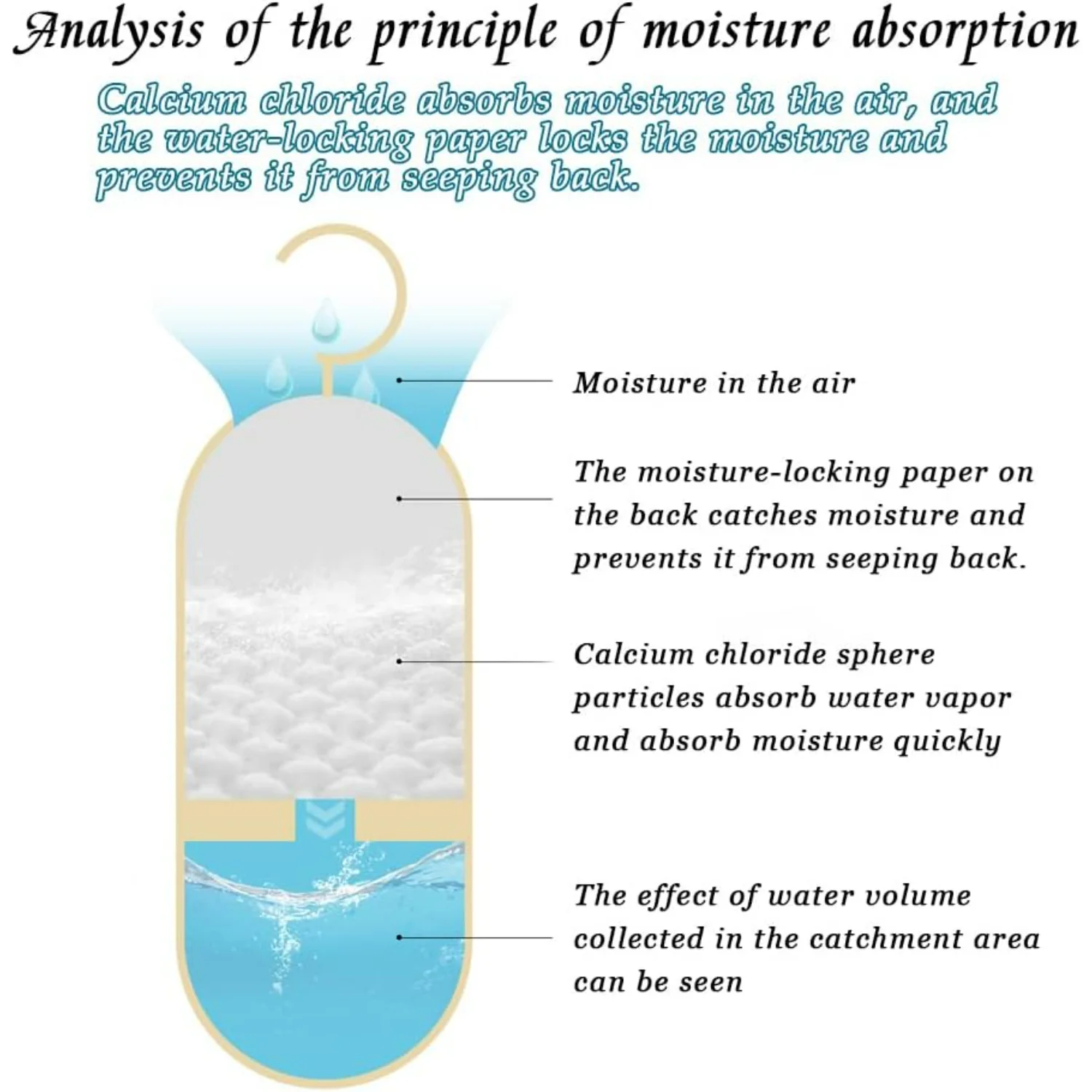 【صديقة للبيئة وآمنة】يوفر امتصاص الرطوبة حلاً فيزيائيًا لحماية العناصر والأقمشة من الرطوبة الزائدة.عند تعليقها، يمنحك إزالة الرطوبة الجسدية حياة آمنة وخضراء وموفرة.