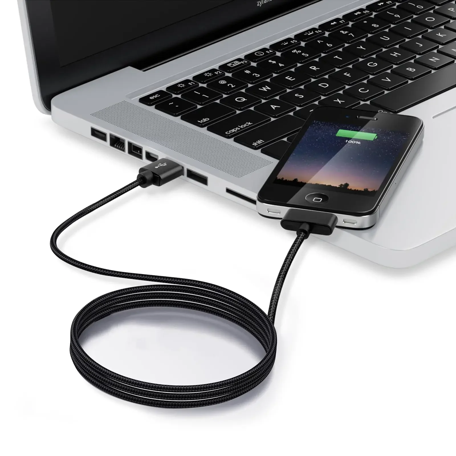 كابل شحن سريع لهاتف iPhone 4 4s iPad 2 3 iPod 30 Pin سلك مضفر من النايلون قابس معدني لنقل البيانات ومزامنة شاحن USB