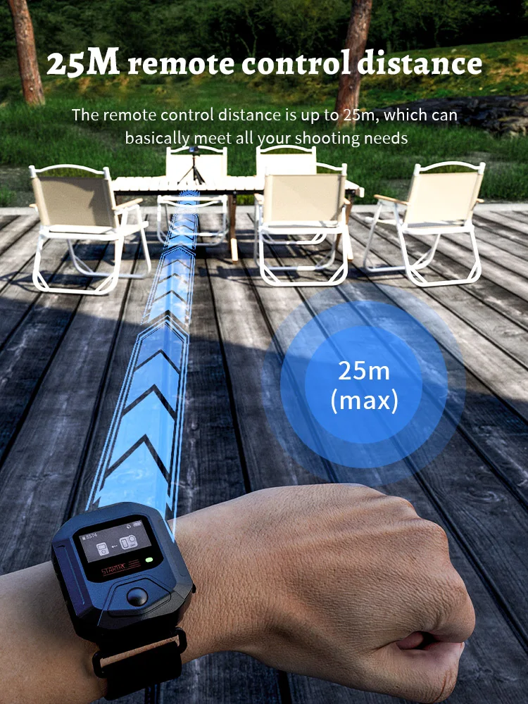 2.مسافة طويلة للتحكم.تصل مسافة التحكم عن بعد بنظام تحديد المواقع العالمي (GPS) إلى 25 مترًا، والتي يمكن أن تلبي جميع احتياجات التصوير الخاصة بك بشكل أساسي.