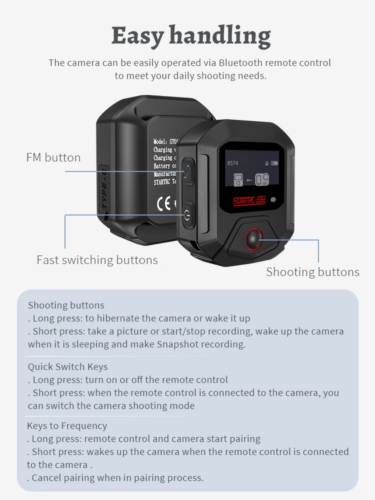 STARTRC نظام تحديد المواقع اللاسلكي بلوتوث التحكم عن بعد ل Insta360 X4/3/2 ACE Pro 2/ACE Pro/ Insta360 Go 3/3S ملحقات كاميرا الحركة