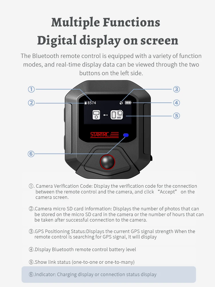 1.تصميم حصري.جهاز تحكم عن بعد مزود بتقنية البلوتوث مع شاشة مصممة خصيصًا لكاميرات سلسلة 360، والتي يمكن توصيلها بالكاميرا للتحكم في التصوير عن بعد.