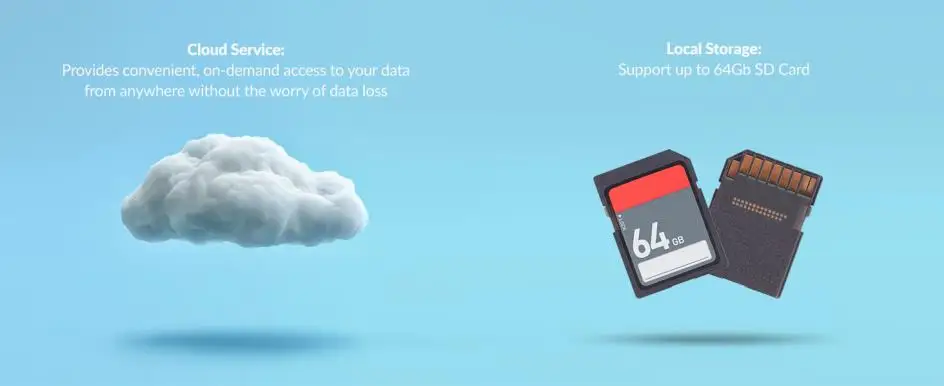 قم بتخزين بياناتك وتسجيلاتك محليًا باستخدام بطاقة SD إضافية (غير متضمنة) أو في السحابة.توفر YI Cloud تسجيلًا حلقيًا بدون حد للتخزين، لذلك حتى في حالة سرقة الكاميرا أو تلفها، ستظل لقطاتك آمنة ويمكن الوصول إليها على السحابة.