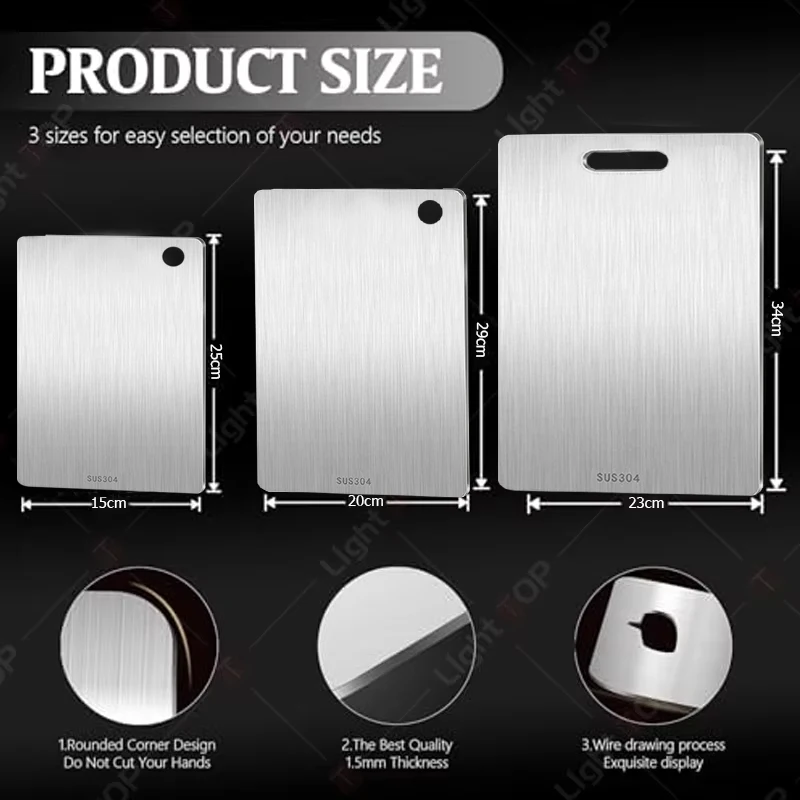 لوح تقطيع من الفولاذ المقاوم للصدأ لألواح تقطيع المطبخ من التيتانيوم 304 لوح تقطيع من الفولاذ المقاوم للصدأ على الوجهين من درجة الطعام