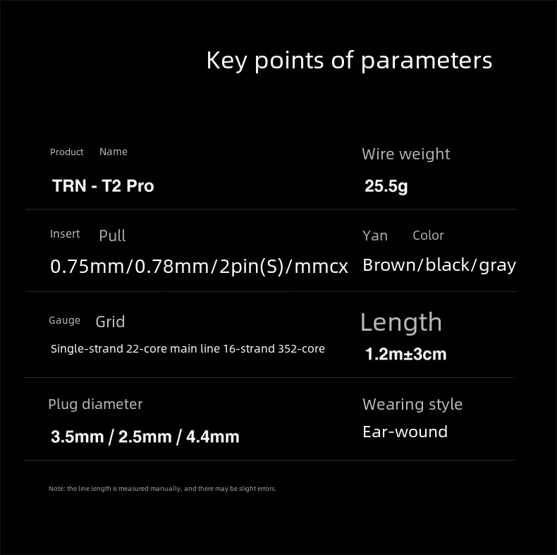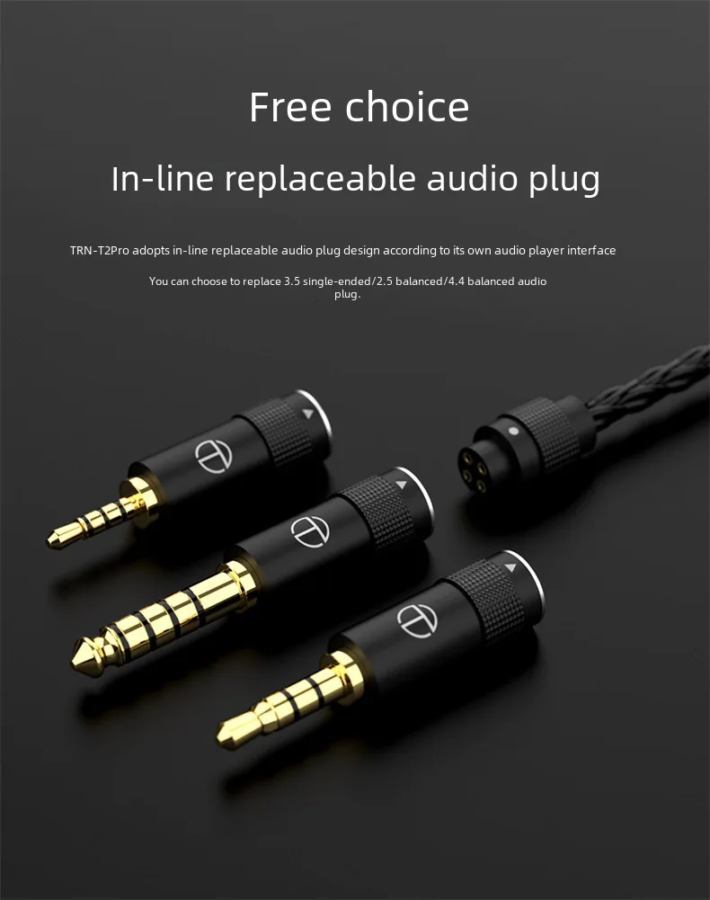 - مادة أسلاك مطورة: تتميز سماعات الأذن TRN T2 PRO بمادة أسلاك مطورة مكونة من 16 جديلة و352 نواة، مما يضمن جودة صوت ووضوحًا فائقين.