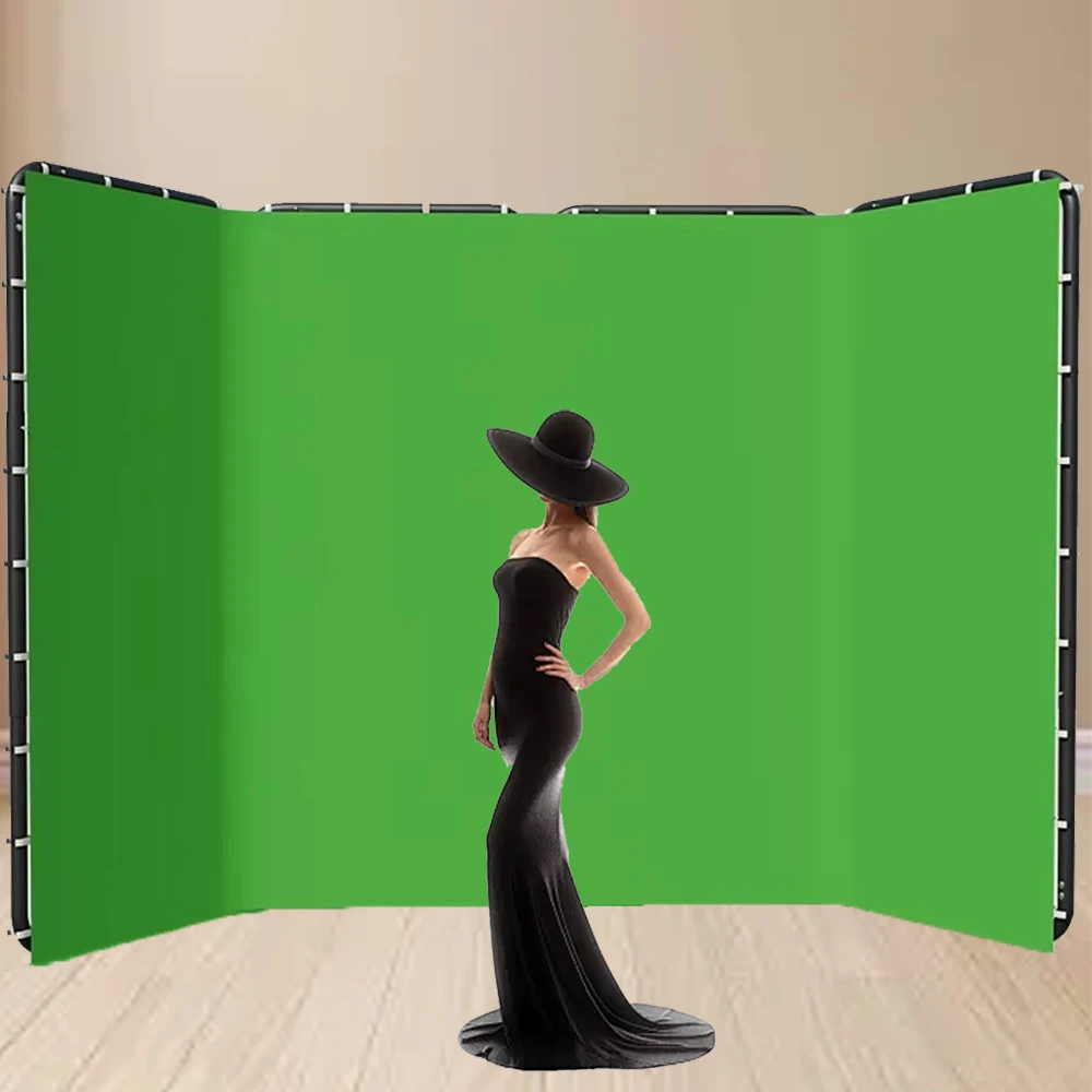 1,151إطار خلفية 2.4 × 3 متر مع ستارة خضراء للتصوير الفوتوغرافي مطوية لمجموعة استوديو الصور الحية Tiktok إطار شاشة أخضر من Chromakey