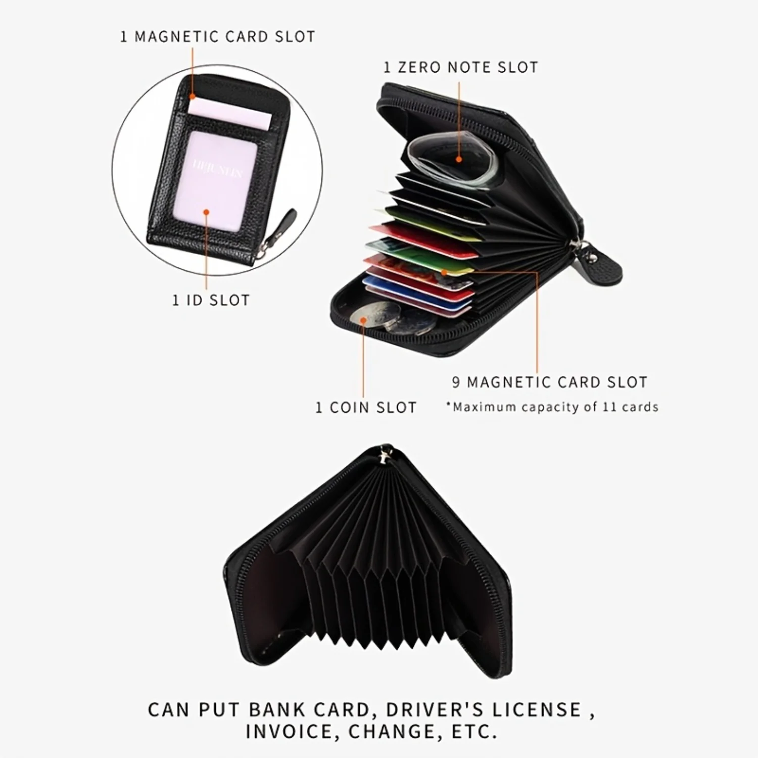 2.حافظ على معلوماتك آمنة مع محفظتنا ذات السحاب الذي يحجب RFID.مصنوع من مواد عالية الجودة، يتميز حامل البطاقات الأنيق هذا بتصميم أنيق مع سحاب آمن عند الإغلاق.مثالية للسفر أو الاستخدام اليومي.