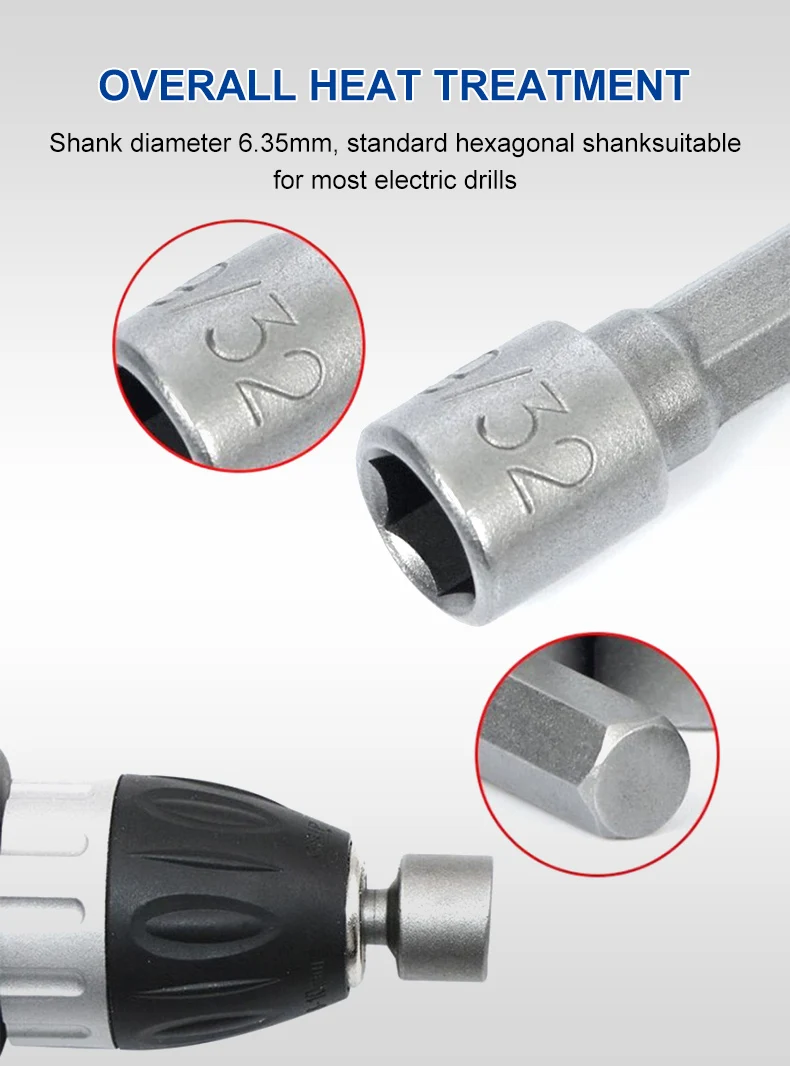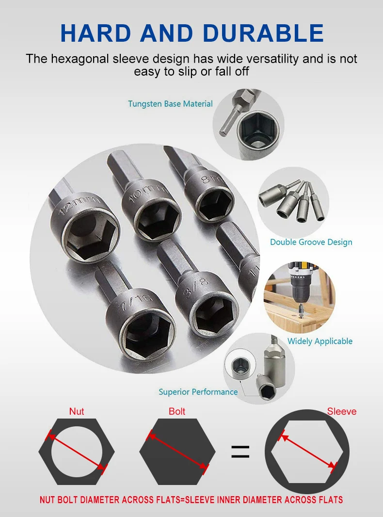 • مقبس قوي:مقبس مفتاح الربط السداسي مصنوع من فولاذ الكروم-الفاناديوم ، مما يجعله قويًا ومتينا.