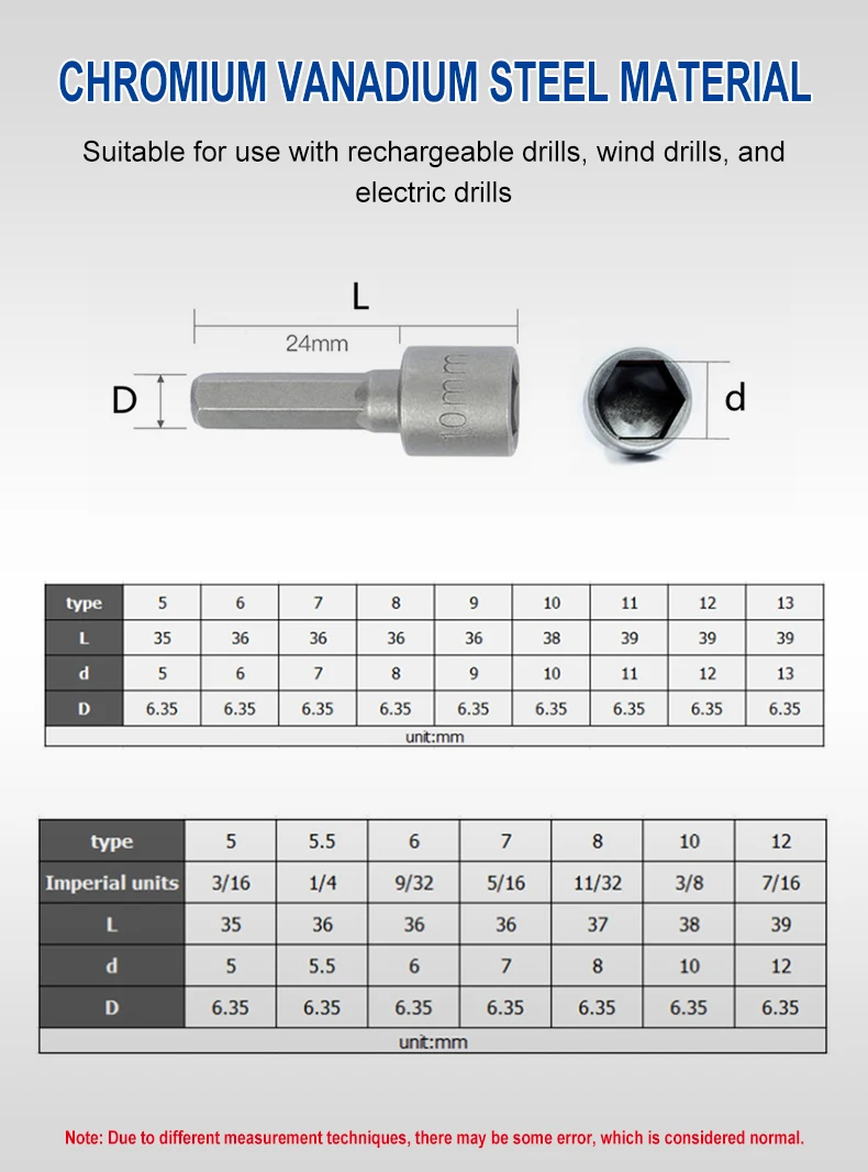 • مقبس قوي:المقبس مصنوع من فولاذ الكروم والفاناديوم ، مما يجعله قويًا ومتيناً.