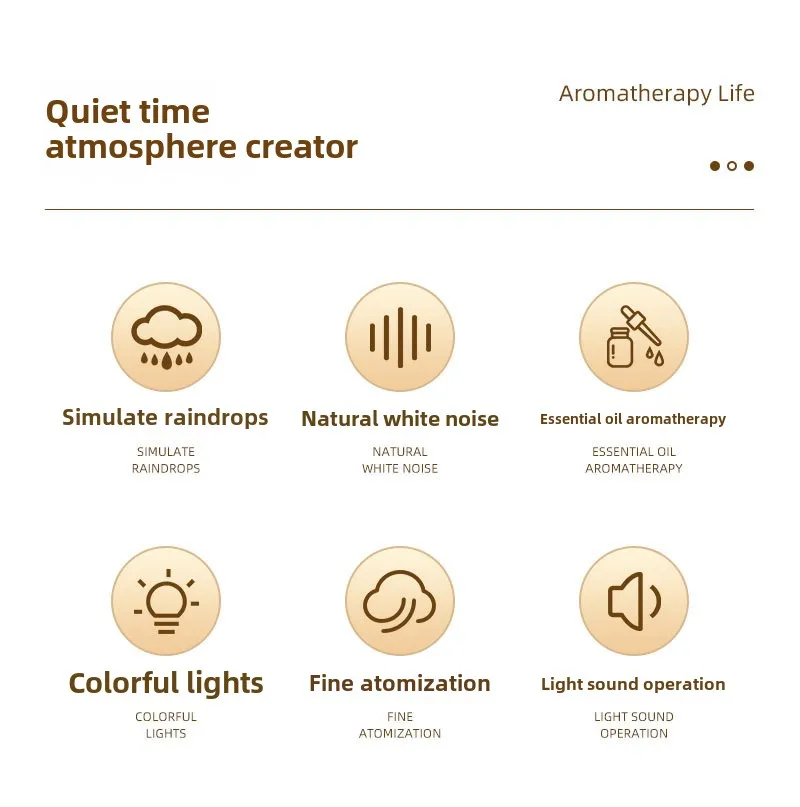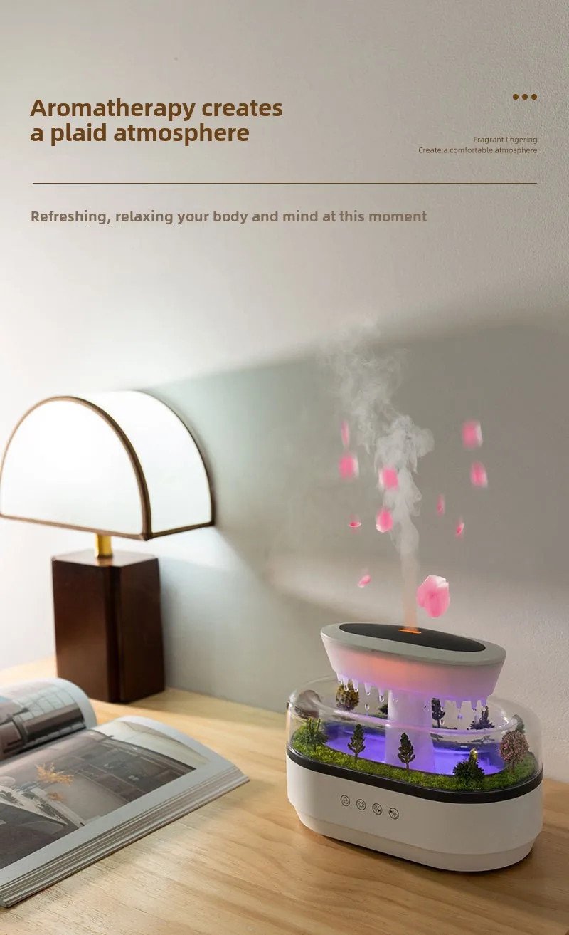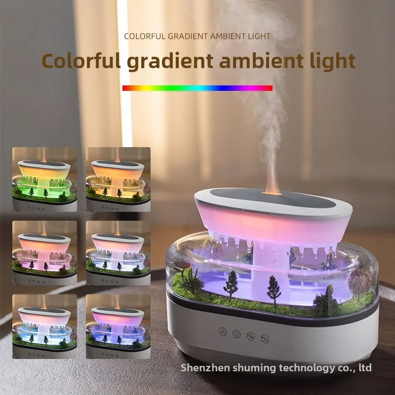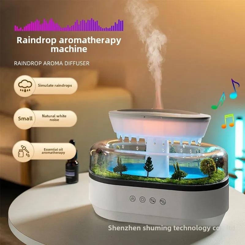 مايكرو المشهد قطرة المطر المرطب الملونة مصباح لتهيئة الجو الناشر الضروري النفط المدمج في الضوضاء البيضاء الروائح آلة